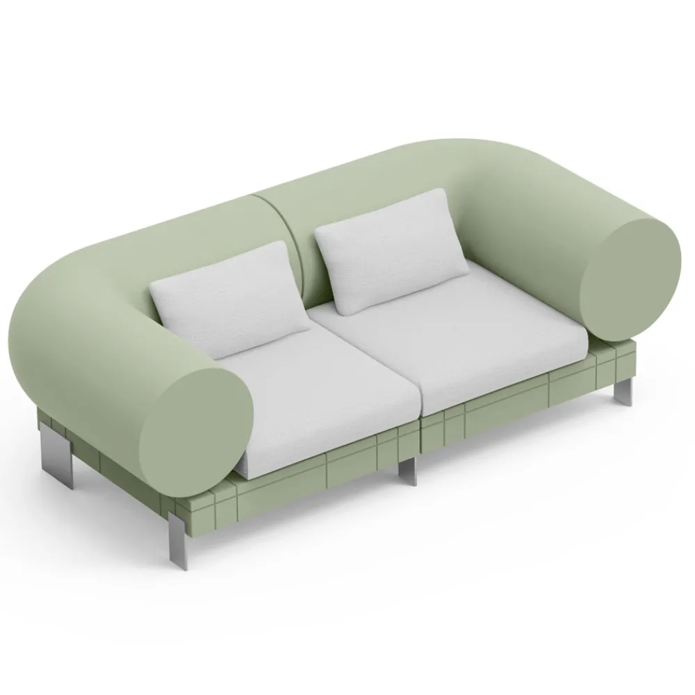 Dieses moderne Sofa vereint Komfort und modernes Design in einem aufmerksamkeitsstarken Möbelstück. Das Sofa zeichnet sich durch klare Linien und eine innovative Form mit seitlichen Zylindern aus und bietet einen Hauch von einzigartigem und funktionalem Stil . Seine Farbpalette bringt ein Element von Helligkeit und Frische in jeden Wohnraum.