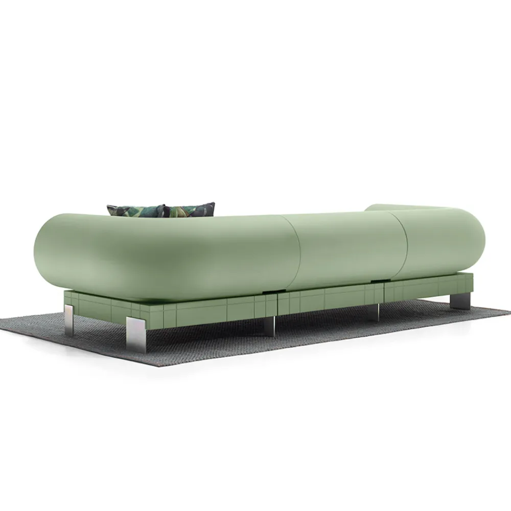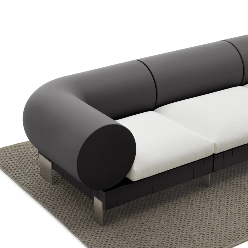 Dieses moderne Sofa vereint Komfort und modernes Design in einem aufmerksamkeitsstarken Möbelstück. Das Sofa zeichnet sich durch klare Linien und eine innovative Form mit seitlichen Zylindern aus und bietet einen Hauch von einzigartigem und funktionalem Stil . Seine Farbpalette bringt ein Element von Helligkeit und Frische in jeden Wohnraum.