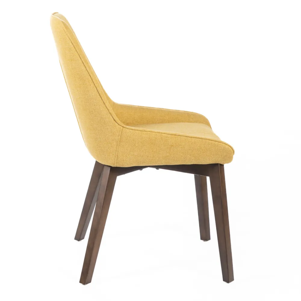 4 Innenstühle mit Sitz und Rückenlehne mit Stoffbezug , Beine und Struktur aus massivem Walnussholz.
