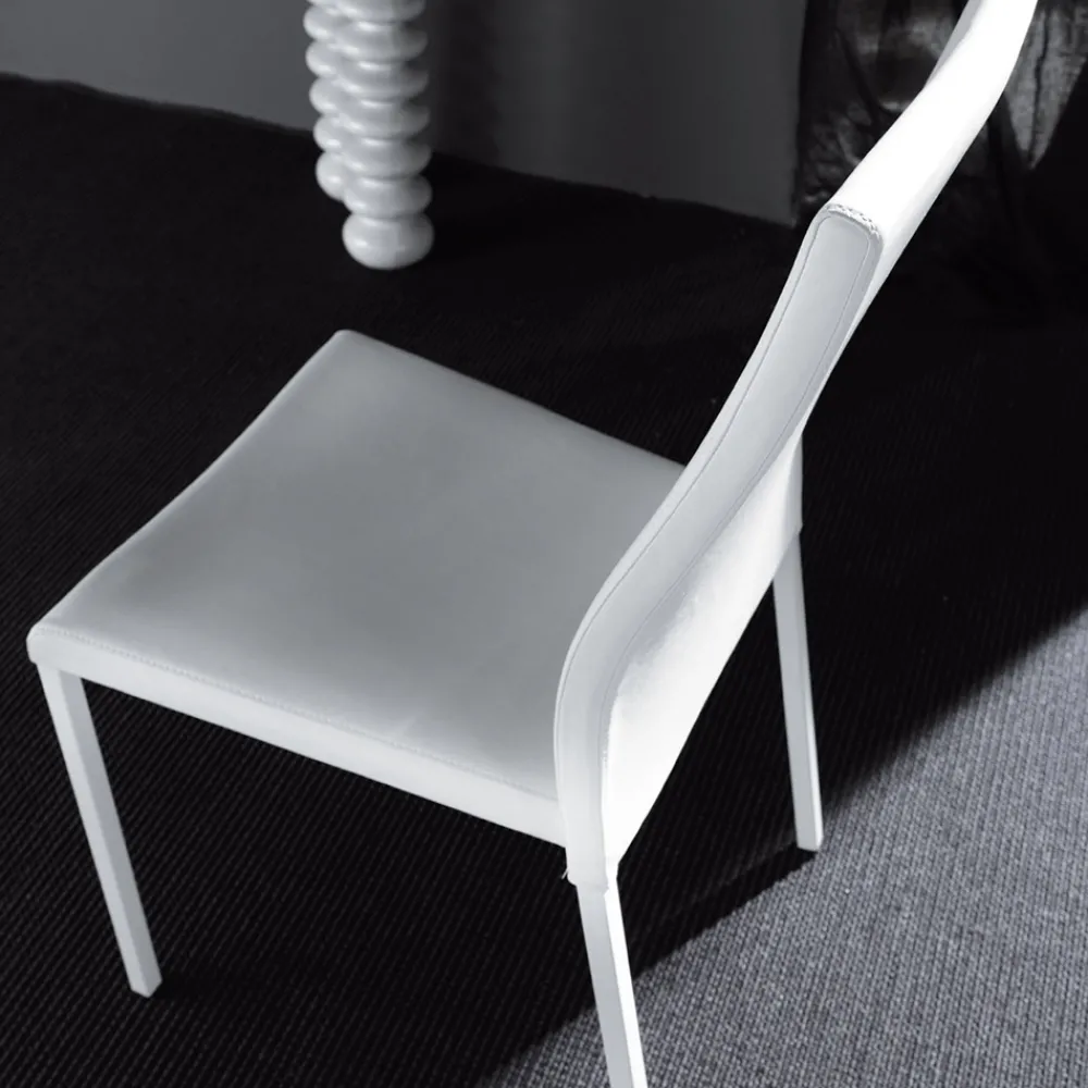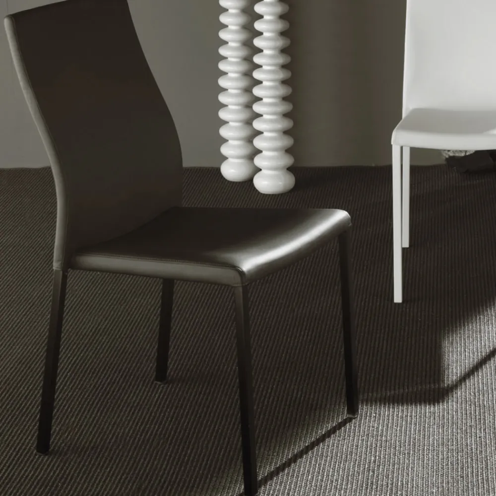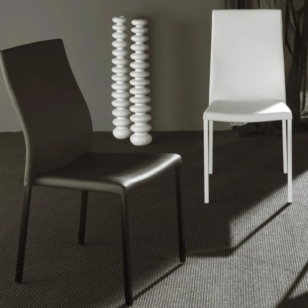 Stapelbarer Esszimmerstuhl bestehend aus Struktur aus lackiertem Metall und Sitz aus Kunstleder . Das Ergebnis einfacher und hochwertiger Materialien, die dazu beitragen, ein perfektes Produkt für jede Umgebung zu schaffen. Dieser Stuhl zeichnet sich durch ein schlankes und elegantes Design aus und hat einfache und geschwungene Linien, einen eleganten und zarten Stil , der Einfachheit und Raffinesse verbindet.