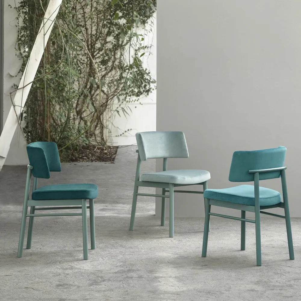 Hochwertiger Samtstuhl mit Eschenstruktur Made in Italy, 2 Stück.