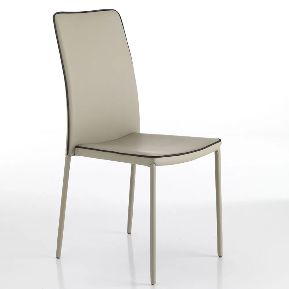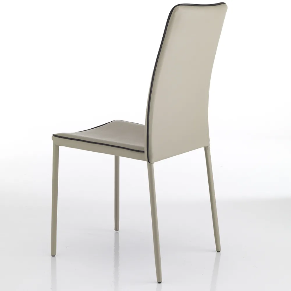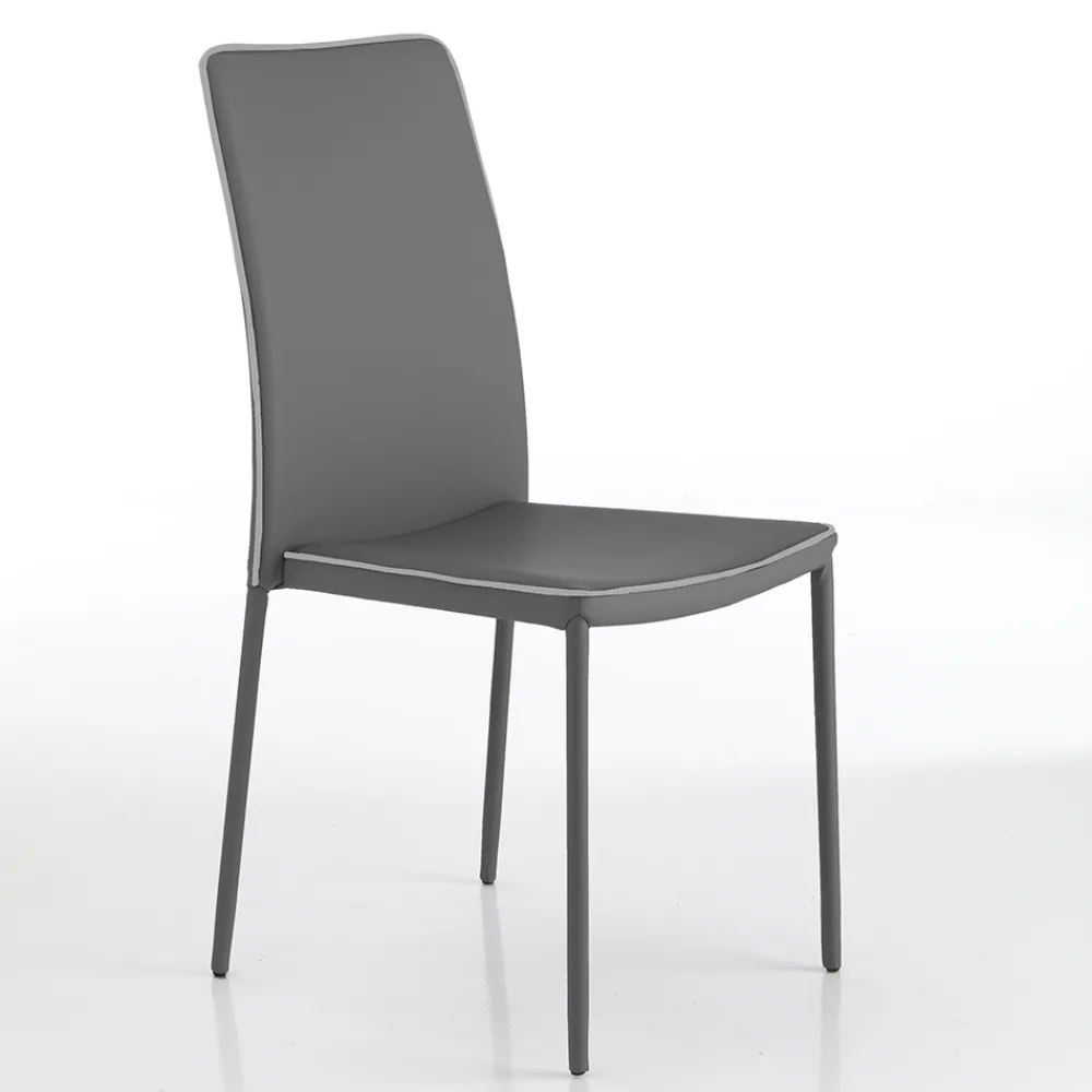 Küchenstuhl komplett mit Kunstleder bezogen mit stapelbarer Struktur. Elegant und einladend ist dieser Stuhl die perfekte Lösung, um die Einrichtung Ihres Esszimmers oder Ihrer Küche mit Geschmack und Persönlichkeit zu vervollständigen, ohne den Blick vom Hauptprotagonisten des Raums, dem Esstisch, abzuwenden, sondern mit ihm eine wunderbare Harmonie der Stile zu schaffen. für ein raffiniertes und exklusives Ergebnis .