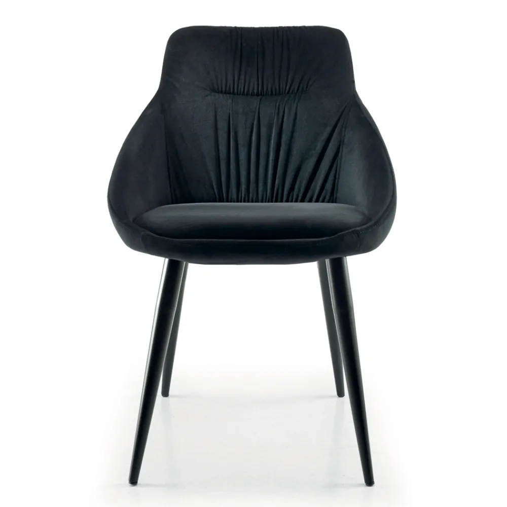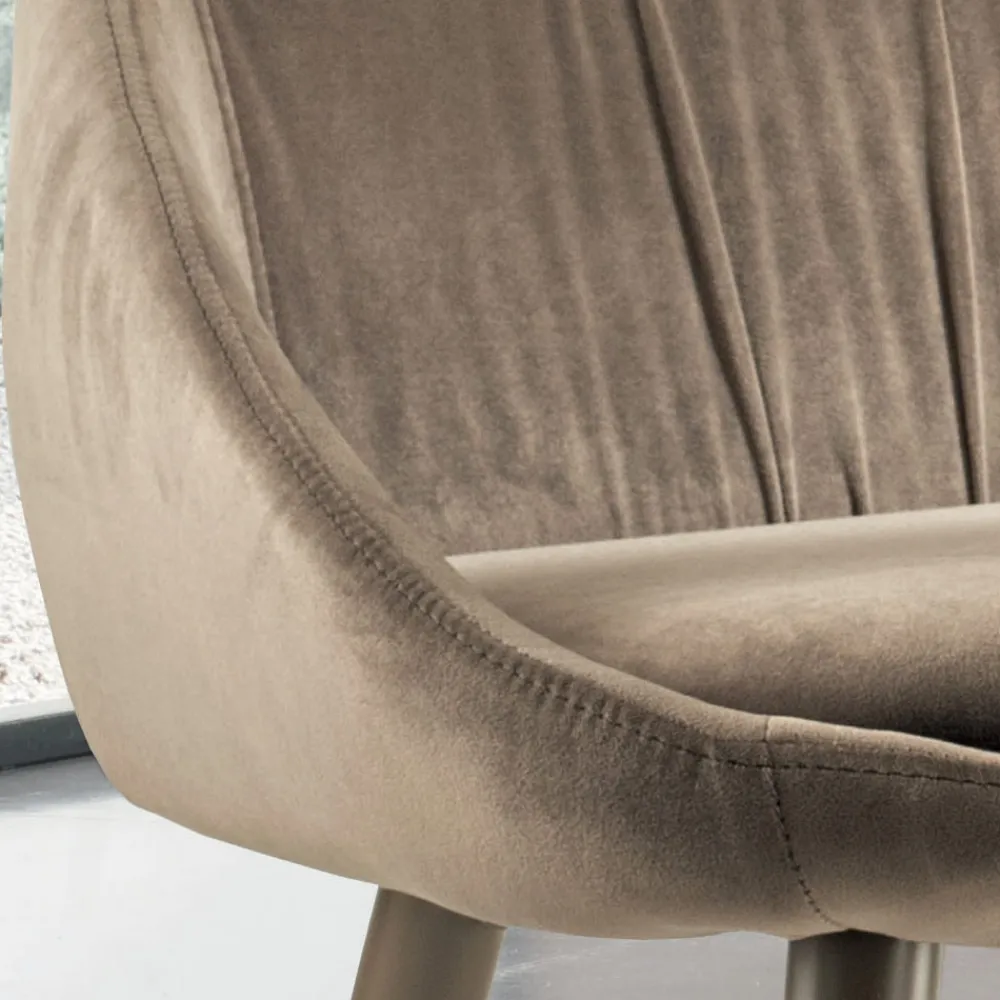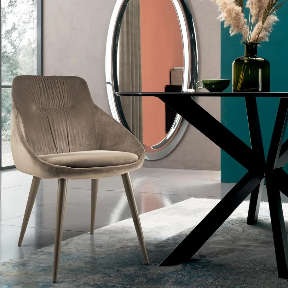 In Italien hergestellter Esszimmerstuhl mit vollständig mit Samt bezogener Stahlstruktur und Beinen aus RAL-lackiertem Stahl , passend zum Sitzbezug. Eleganz und Persönlichkeit sind die Hauptmerkmale dieses wunderbaren Möbelstücks mit einem exklusiven und raffinierten Stil . Die besondere Form der Rückenlehne macht ihn besonders originell und bietet gleichzeitig eine bequeme und einladende Sitzfläche, ideal für alle, die einen Stuhl suchen, der ebenso funktional wie designorientiert ist. Die perfekte Kombination aus der edlen Note von Samt und der Modernität von Stahl erweckt eine innovative Einrichtungsidee zum Leben, die jedes Esszimmer oder jede Küche auf einzigartige Weise mit einer zeitgenössischen Ästhetik vervollständigt.