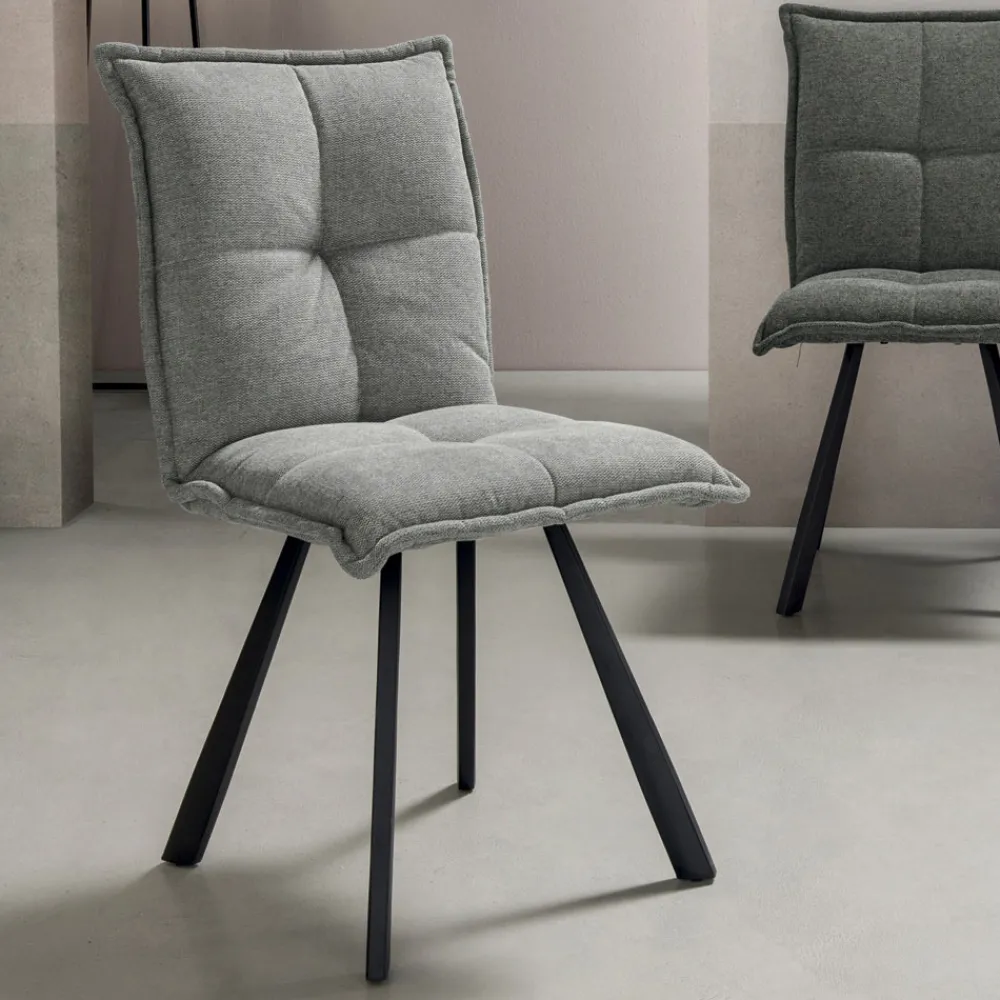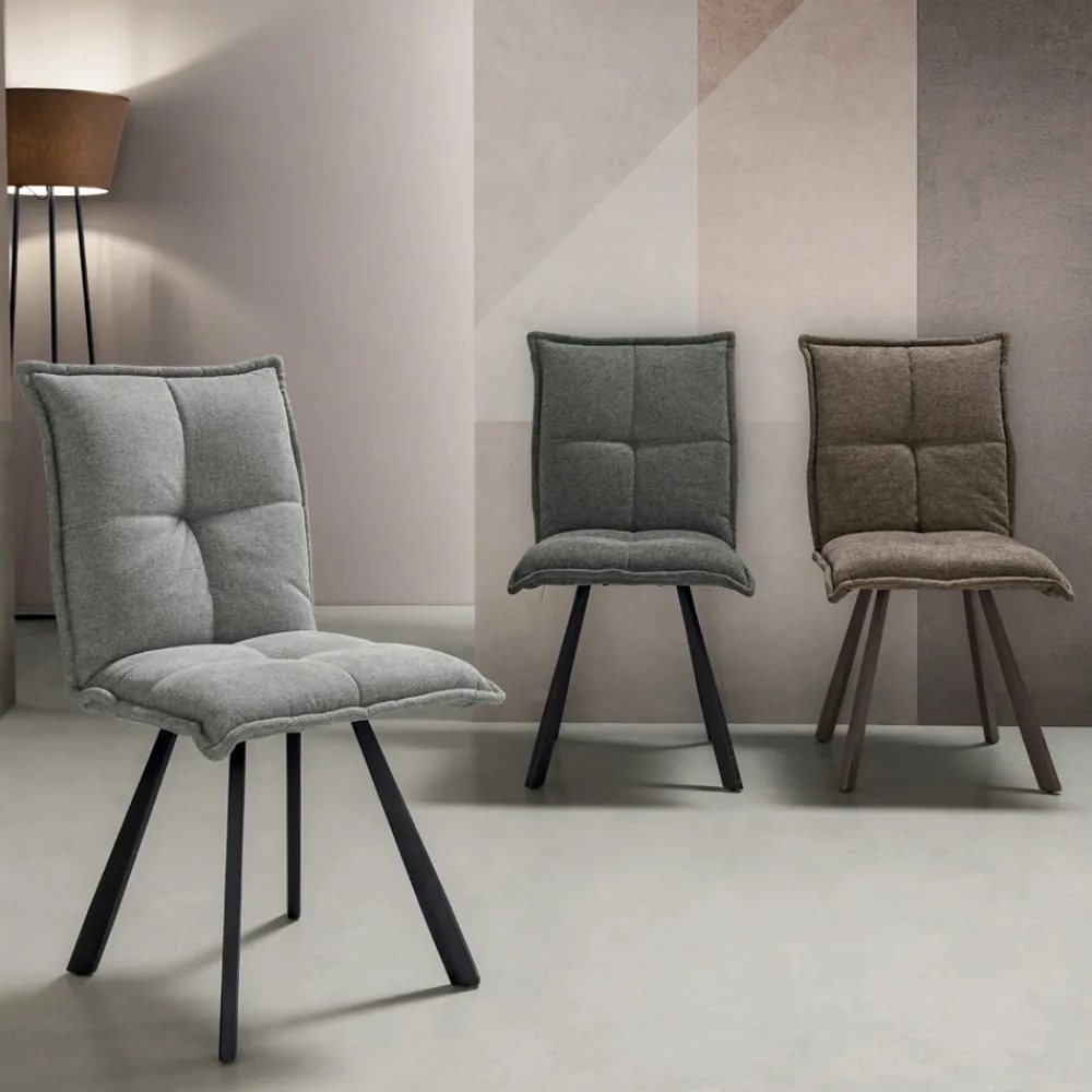 Wohnzimmerstuhl mit Sitz aus gepolstertem Stoff und lackierter Metallstruktur, gekennzeichnet durch ein modernes, schlichtes und elegantes Design. Sein Sitz ist besonders weich und einladend, ideal für optimalen Komfort . Eine Ergänzung mit einem traditionellen Stil, der in einem zeitgemäßen Schlüssel neu aufgelegt wurde, um einen originellen Sitz durch die Verwendung moderner und innovativer Materialien zum Leben zu erwecken.