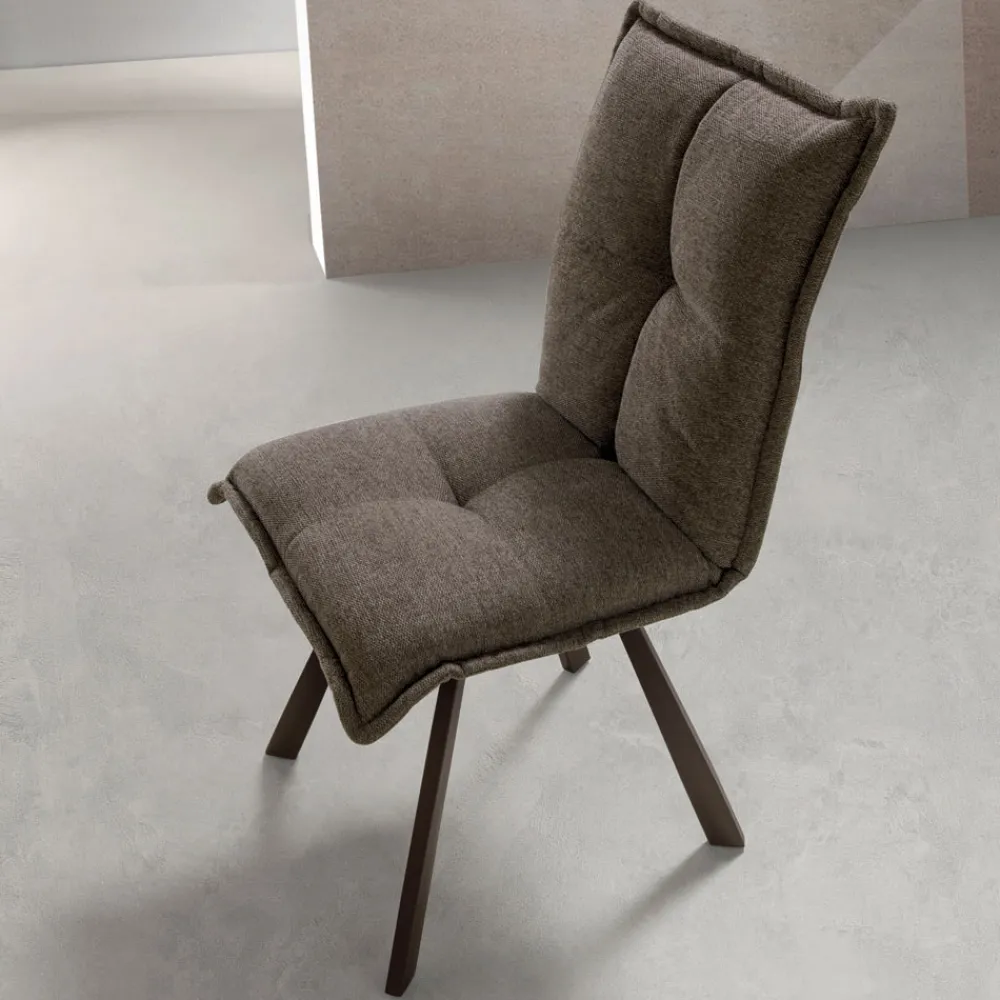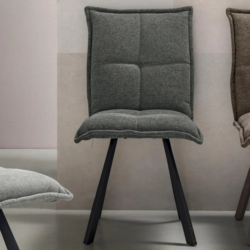 Wohnzimmerstuhl aus gepolstertem Stoff mit 4-teiliger Struktur aus lackiertem Metall.