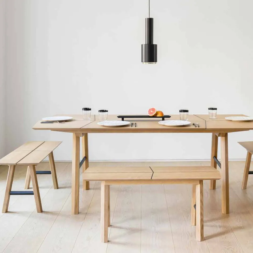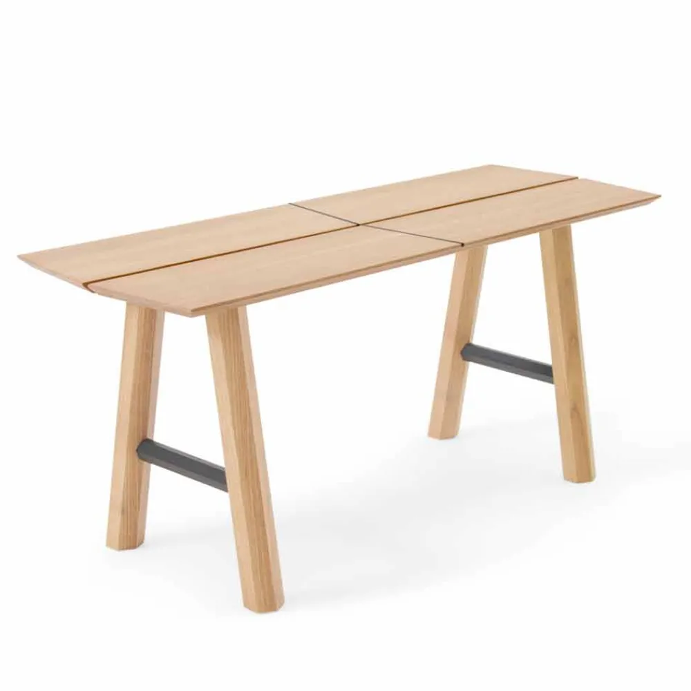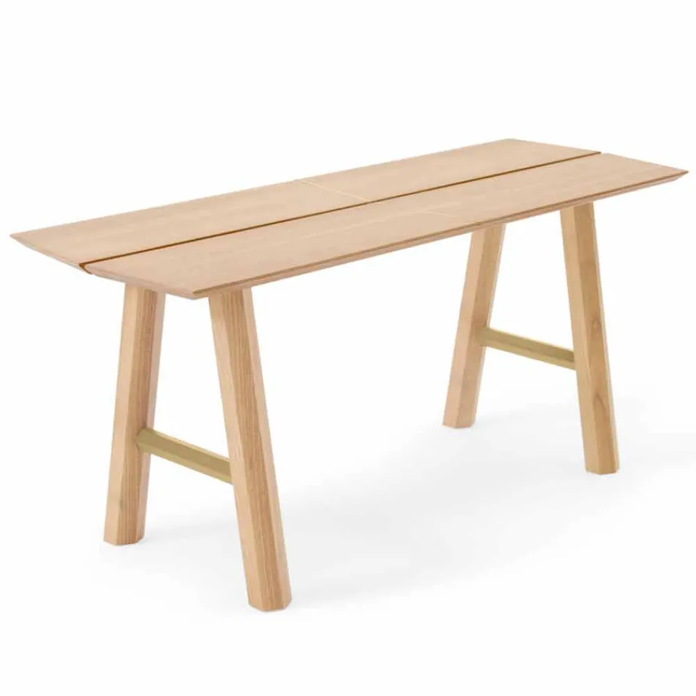 Moderne Bank aus massivem Eschenholz und Furnier mit lackierten Details.