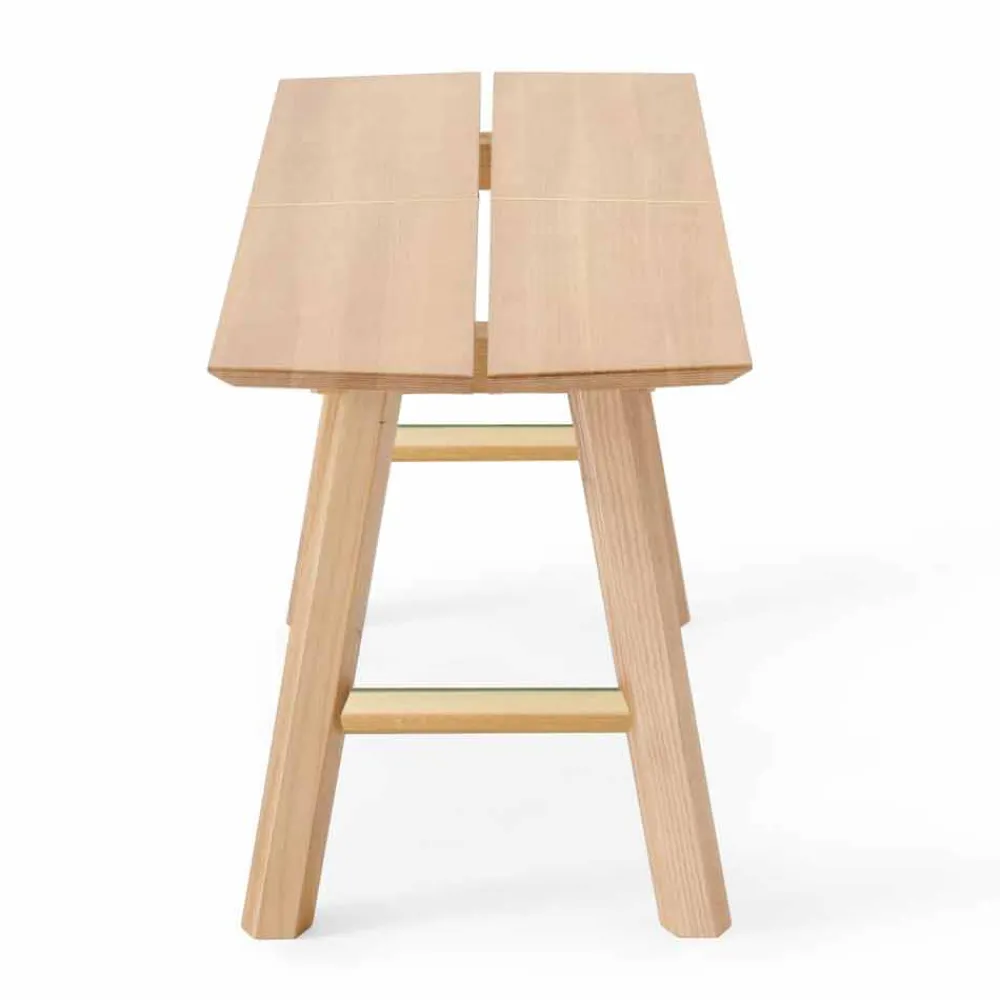 Diese moderne Bank zeichnet sich durch ihr einfaches, aber einzigartiges Design aus , das dank der Verarbeitung von Rohstoffen durch qualifizierte Handwerker in der Branche, die die Herstellung eines qualitativ hochwertigen Endprodukts ermöglichen, die Aufmerksamkeit im Raum auf sich ziehen kann. Qualität und starke visuelle Wirkung. Die Struktur ist von der Natur inspiriert und verwendet lackierte Details im Gegensatz zum Finish des Sitzes aus matt furniertem Eschenholz , das an die Adern eines Blattes erinnert. Dieses Detail befindet sich auch an der Basis der Bank, die aus 2 Querstücken in der gleichen lackierten Oberfläche besteht, die auf dem Sitz und den sechseckigen Beinen aus massivem Eschenholz vorhanden sind und dem Produkt Stabilität und Festigkeit sowie eine hervorragende Beständigkeit über die Zeit und ein einzigartiges Design verleihen wollte. Dank ihrer Vielseitigkeit und geringen Größe ist diese Bank die perfekte Lösung für größere moderne Umgebungen, aber auch auf engstem Raum, was immer zu einer funktionalen und eleganten Sitzidee führt. Der Artikel ist dank der Verwendung eines einfachen feuchten Tuchs auch leicht und schnell zu reinigen.