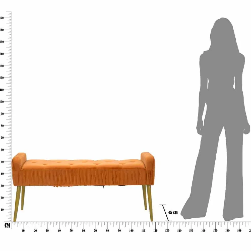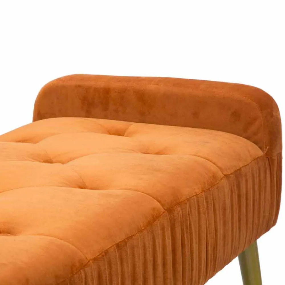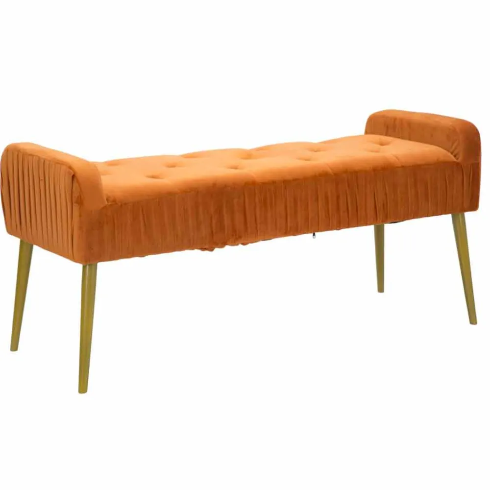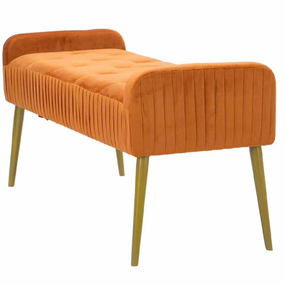 Rostfarbene rechteckige Bank 120X45X55 cm aus Holz und Designerstoff.