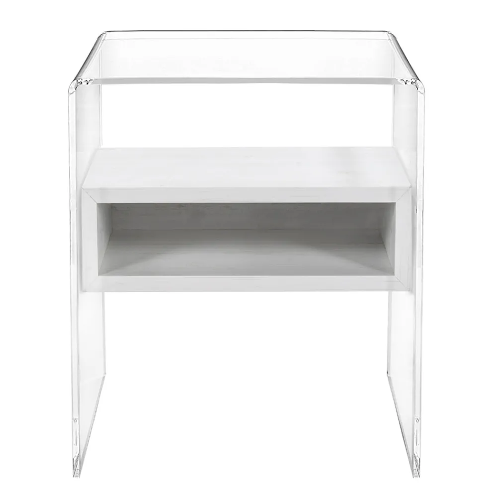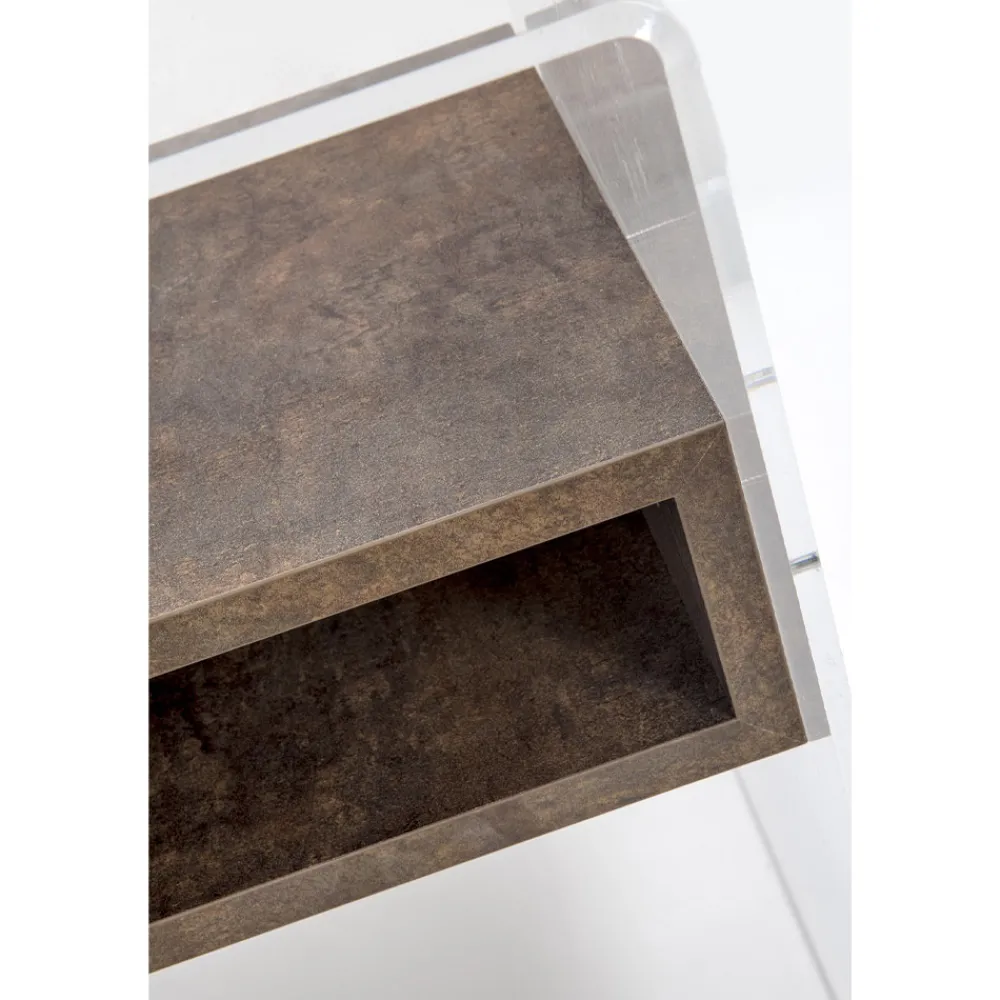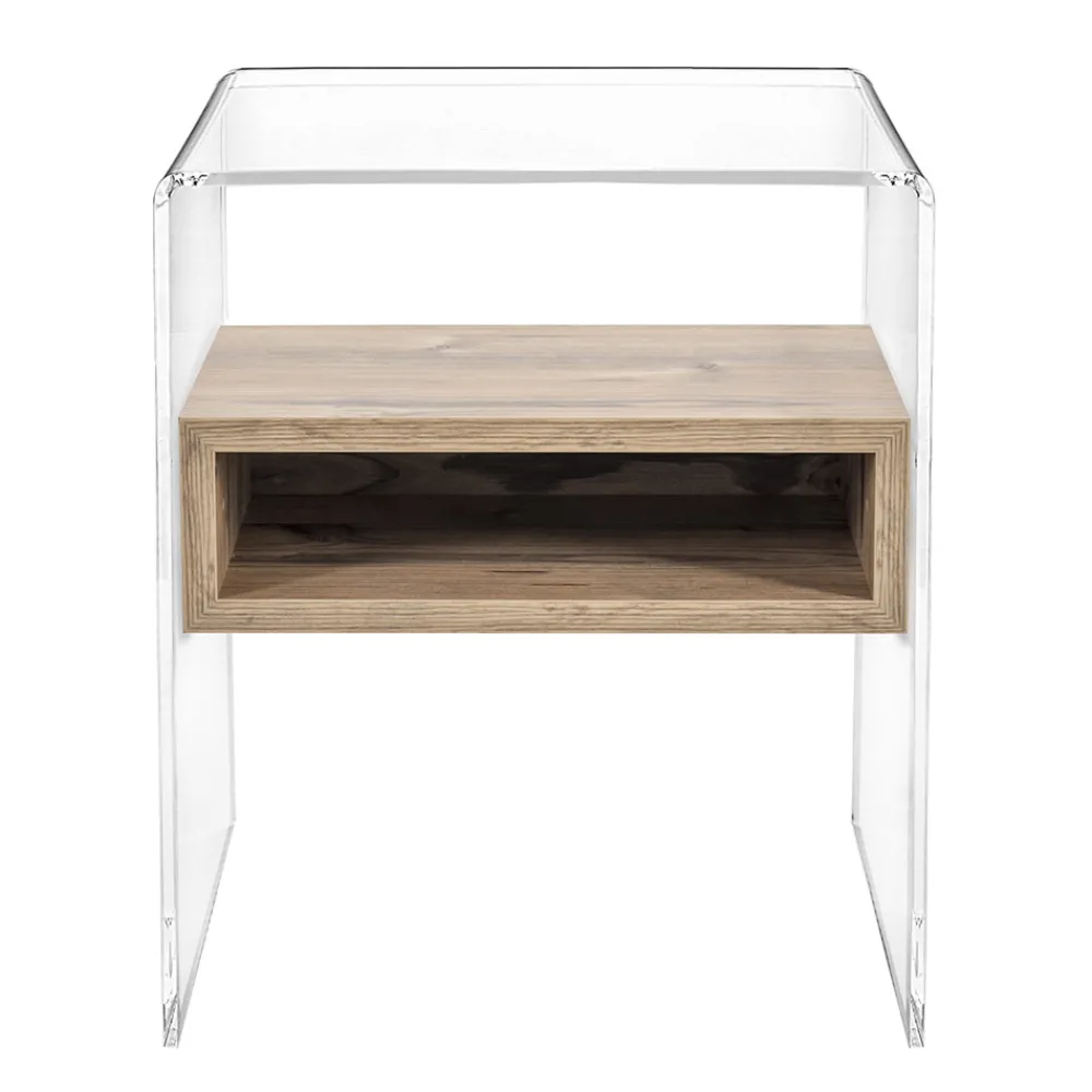 Nachttisch oder Couchtisch aus transparentem Plexiglas und Holzessenzen made in Italy.