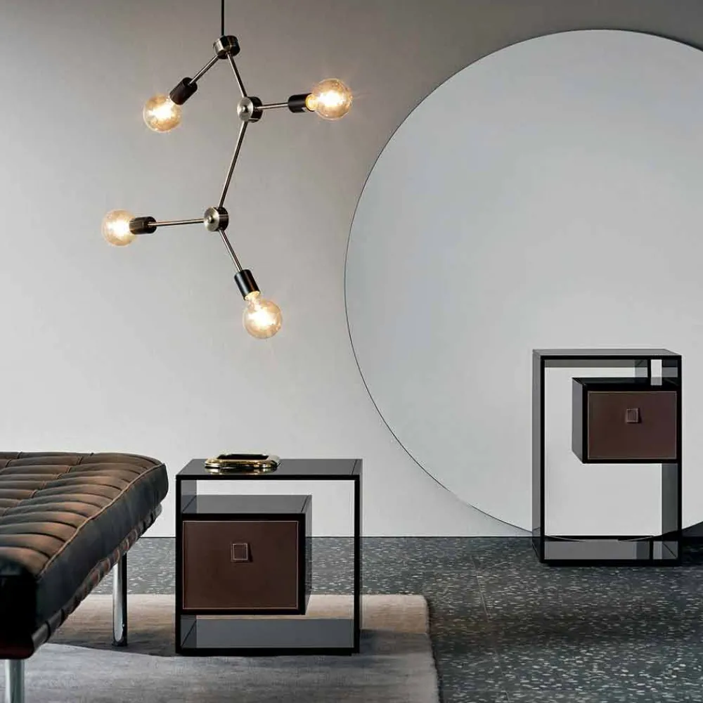 Hinweis: Die Schubladen in verschiedenen Ausführungen und die obere Ablage für die Schublade aus geätztem, verspiegeltem oder lackiertem Glas sind auf Anfrage erhältlich. Für ein kostenloses Angebot zögern Sie nicht, uns zu kontaktieren, indem Sie das Formular „Informationen anfordern“ ausfüllen.