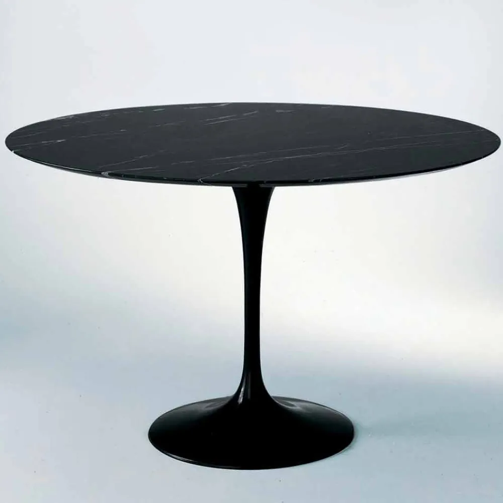 Esstisch mit runder Marmorplatte und schwarz lackiertem Aluminiumgussgestell. Hergestellt in Italien mit hochwertigen Rohstoffen , zeigt dieses Möbelstück eine starke elegante Persönlichkeit , die durch die wundervolle Marmorplatte unterstrichen und bereichert wird, ein hochwertiges und raffiniertes Material , das einen perfekten Kontrast zur Modernität von lackiertem Aluminium bildet. eine stilistische Lösung mit starker visueller Wirkung zum Leben erwecken. Seine schlichten und geradlinigen Formen machen es auch besonders vielseitig, daher ideal, um jedes Esszimmer oder jede Küche, die von einem zeitgenössischen Geschmack geprägt sind, auf exklusive Weise zu vervollständigen und ein avantgardistisches Design und ein Gefühl von Raffinesse mit sich zu bringen .