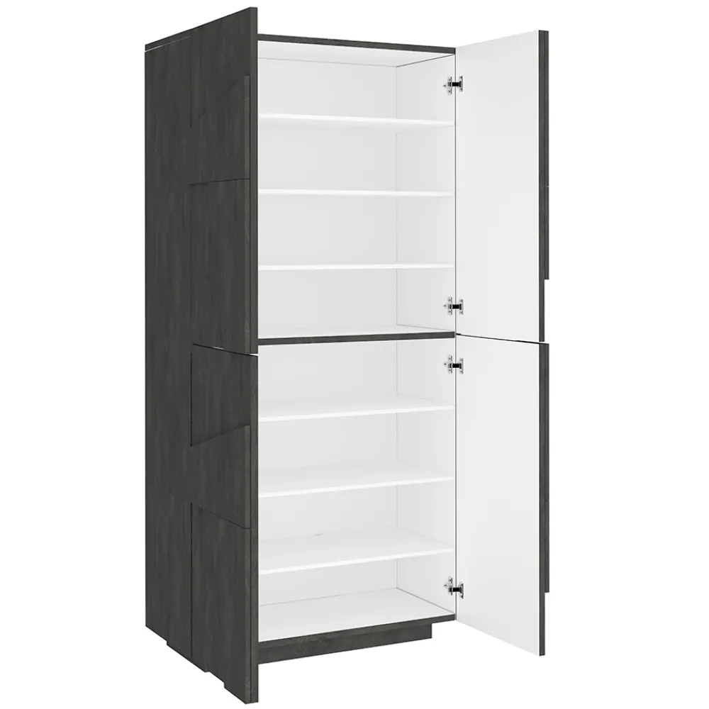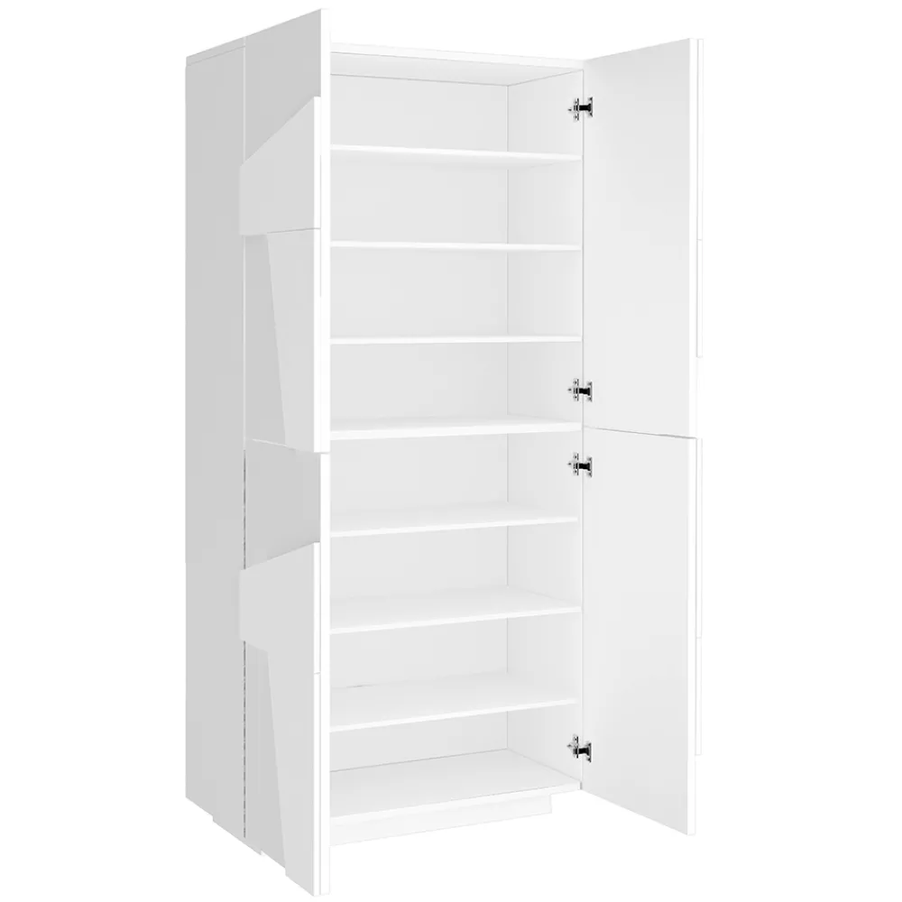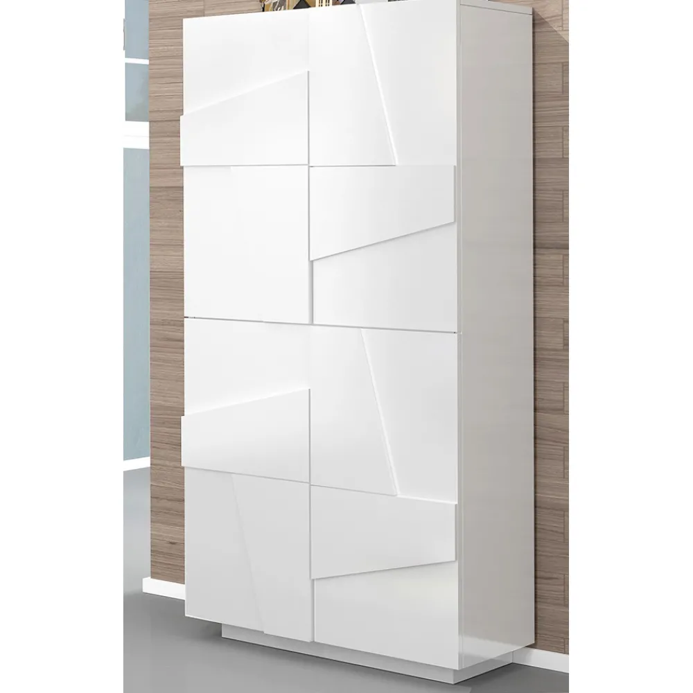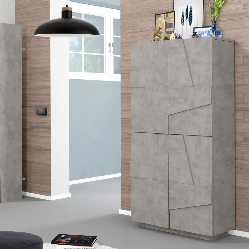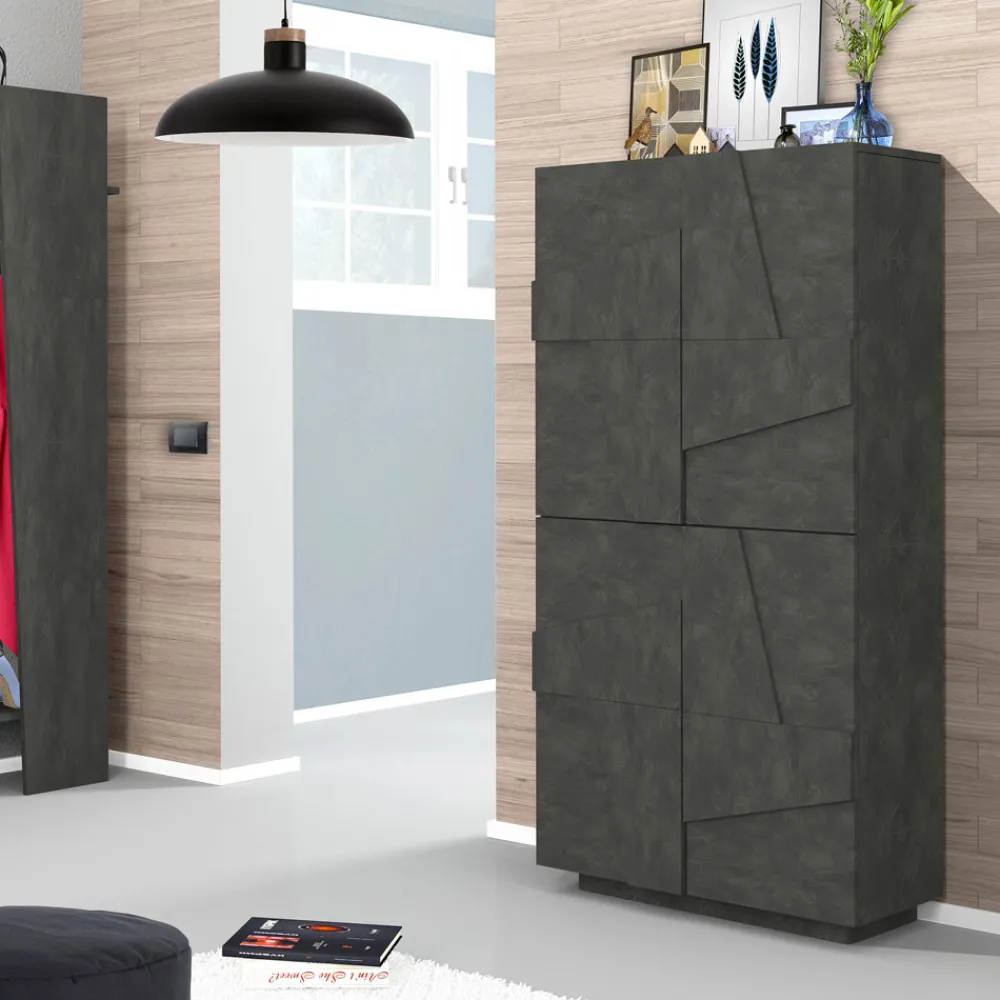 Der Schuhschrank besteht aus 4 Flügeltüren , die durch die geometrische Reliefschnitzerei auf der Oberfläche besonders angefertigt wurden und 8 Behälterfächer schließen, die viel Stauraum garantieren. Es besteht aus Melamin und ist zu 100 % Made in Italy . Dieses Produkt eignet sich dank seiner schlichten und eleganten Oberflächen , die der Umgebung eine einzigartige und unvergessliche Note verleihen, zur Vervollständigung der Einrichtung jedes Wohnbereichs. Das verwendete Material garantiert Qualität und Beständigkeit auch im Laufe der Zeit.