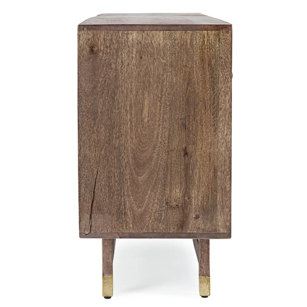Dieses Design Anrichte für das Wohnzimmer hat eine Mango Holzstruktur und MDF – Rückenlehne mit Stahlgriffen.