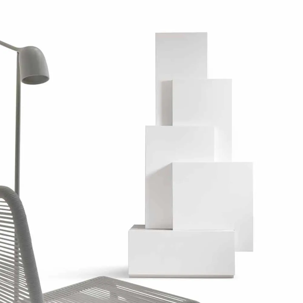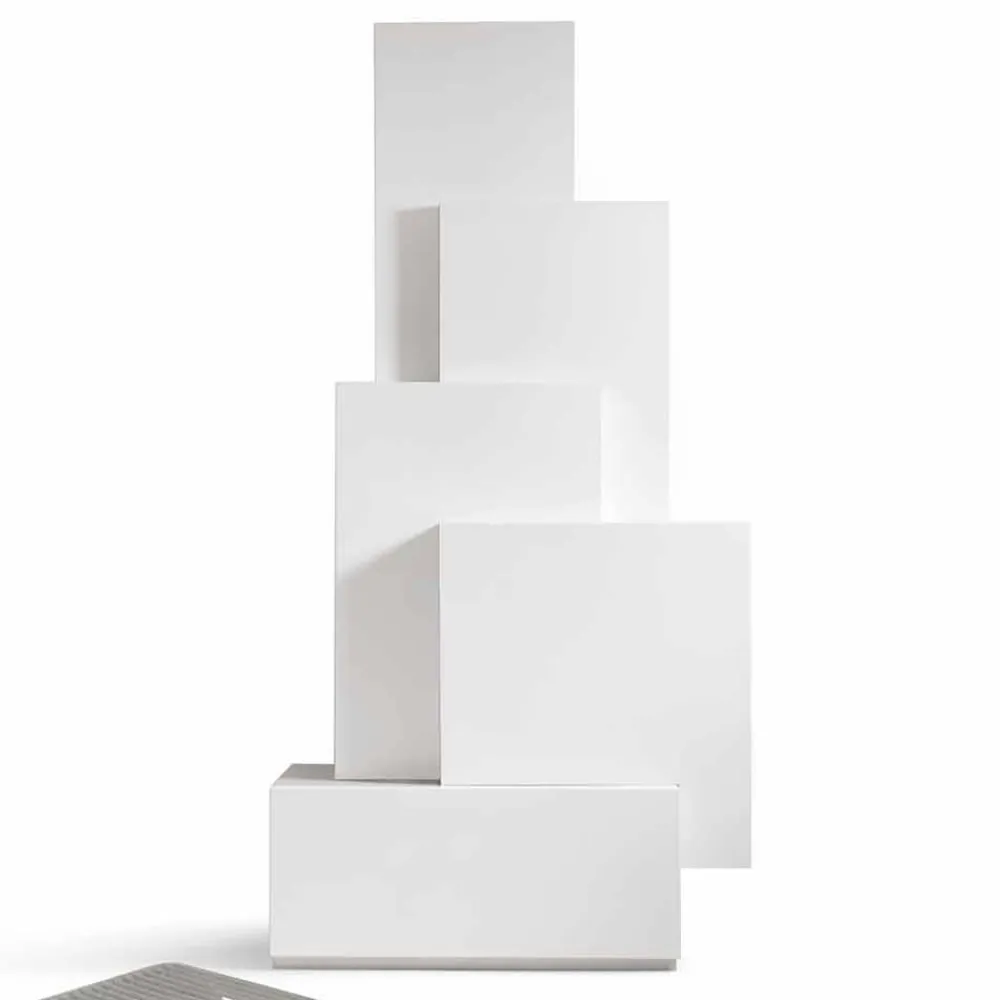 Standschrank bestehend aus 5 stapelbaren MDF-Elementen mattweiß lackiert.