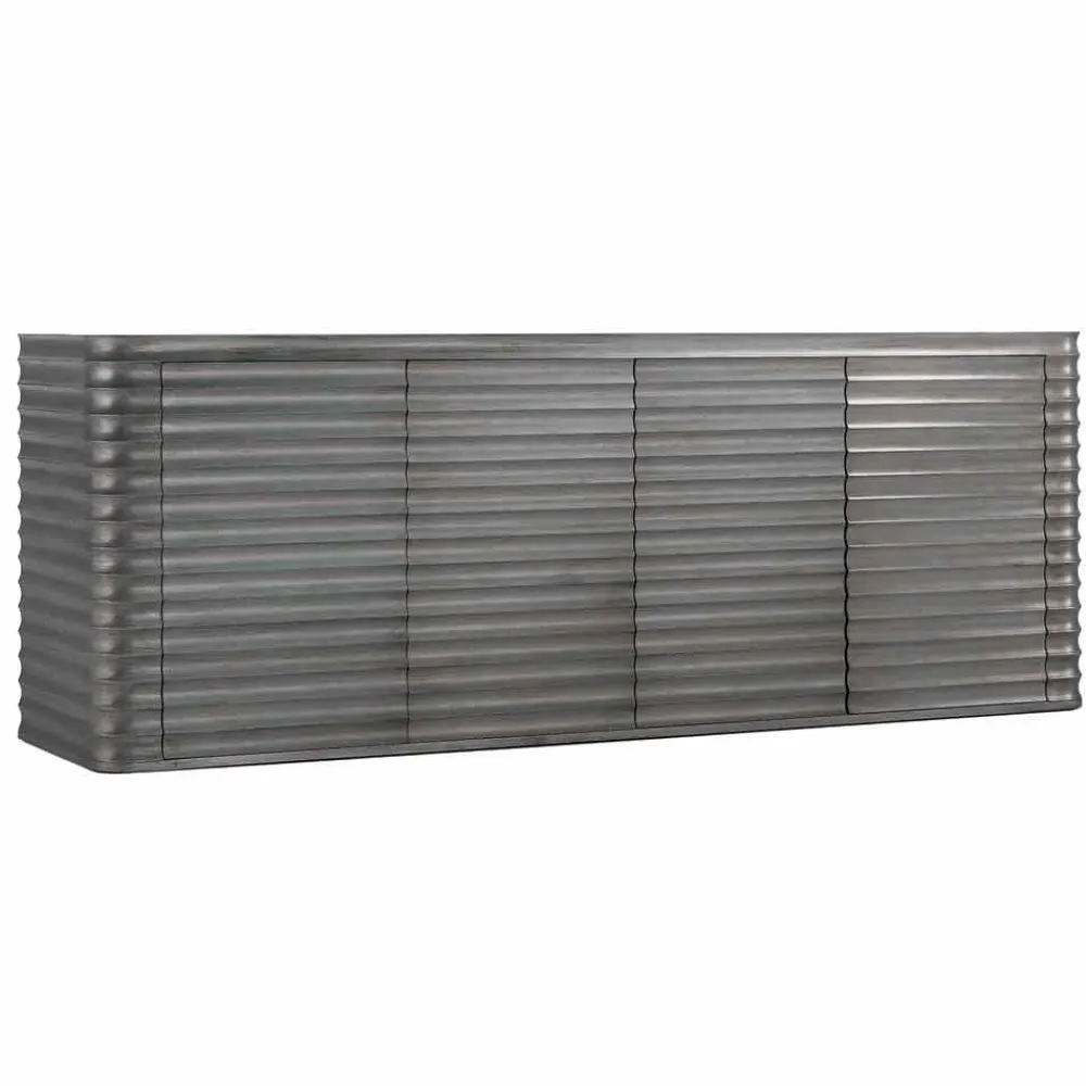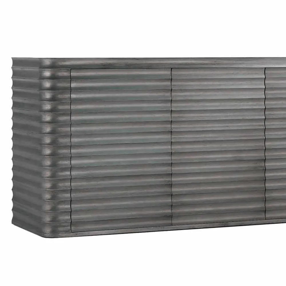 Niedrige Schrank 4 Türen mit Holzstruktur mit numerischer Steuerung Maschine bearbeitet. Welleneffekt. Dana ist in folgenden Ausführungen erhältlich: patinierter gebleichter Ahorn oder Blei. Wählen Sie das gewünschte Finish aus dem Dropdown-Menü.
