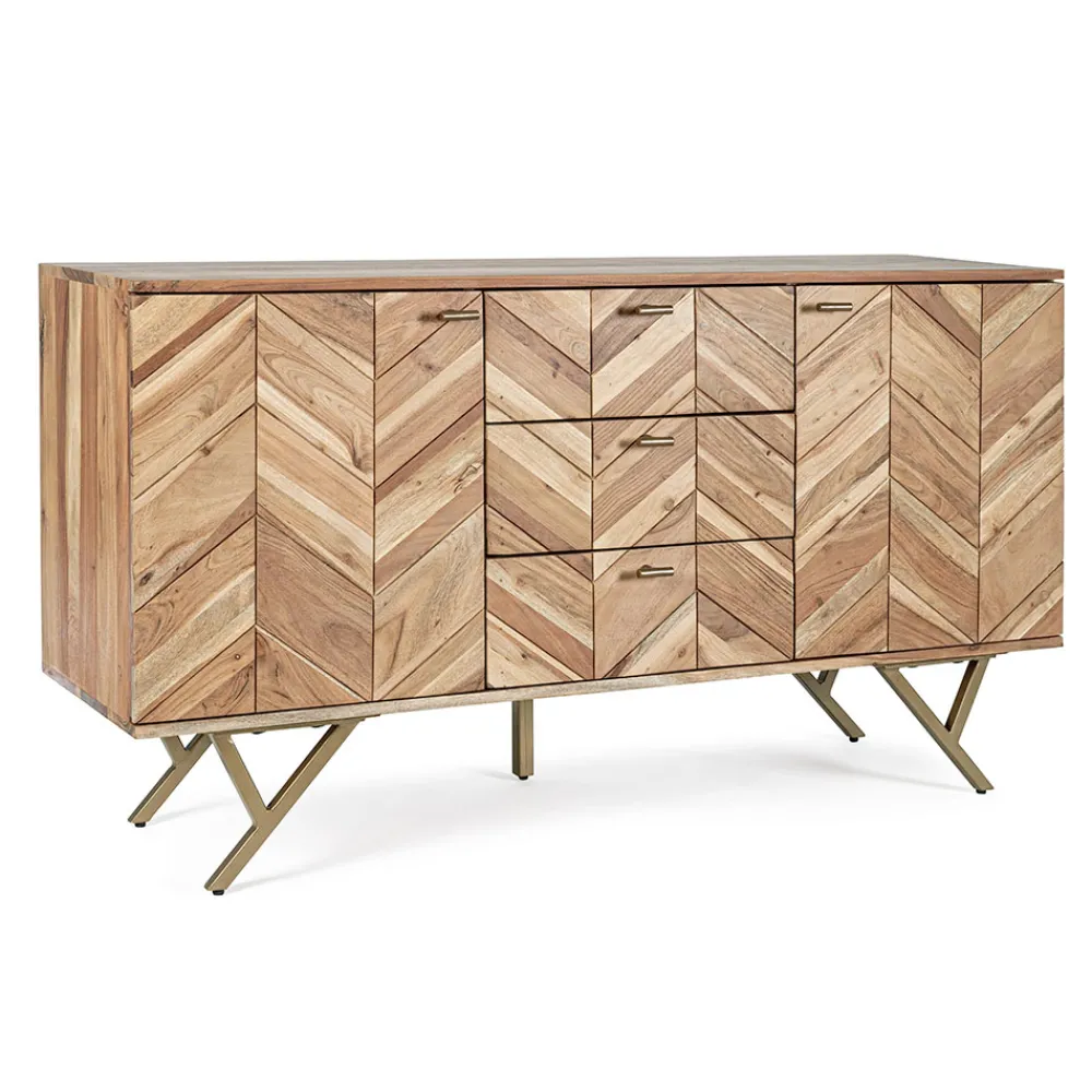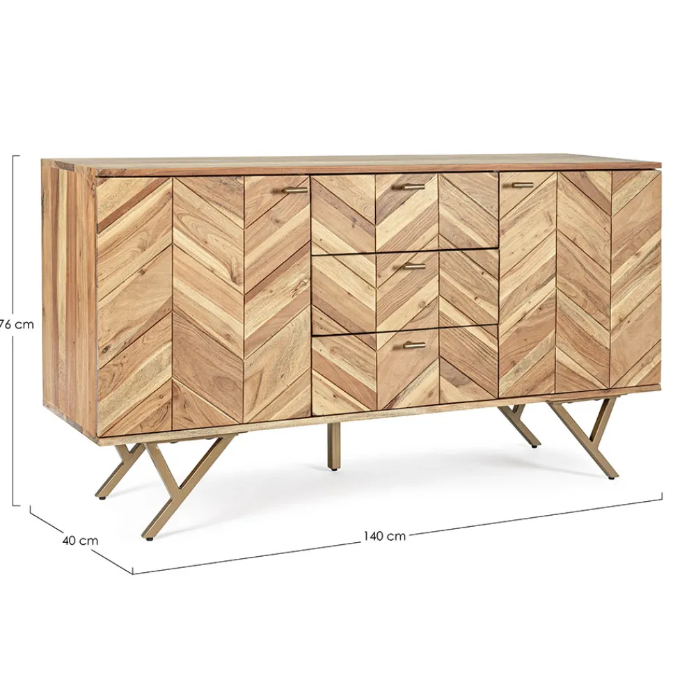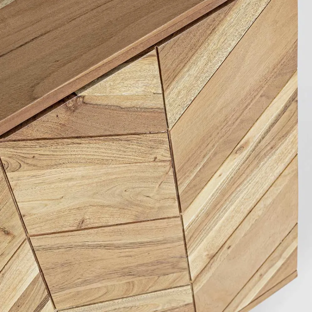 Dieses Design-Sideboard für das Wohnzimmer hat eine Struktur aus Akazienholz , Rückwände und Schubladeninnenseiten aus Sperrholz mit Polyurethanlack-Finish.