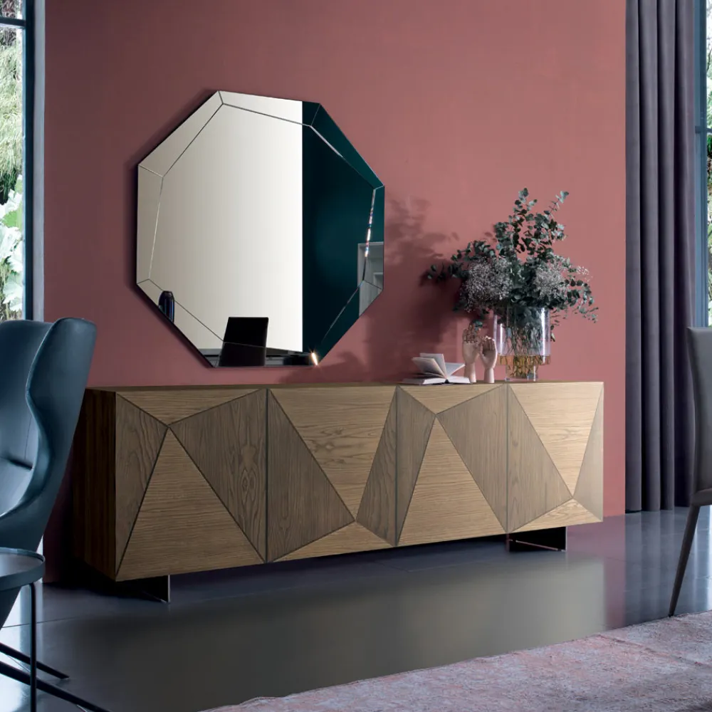 Wohnzimmer-Sideboard aus handbemaltem furniertem Holz, hergestellt in Italien.