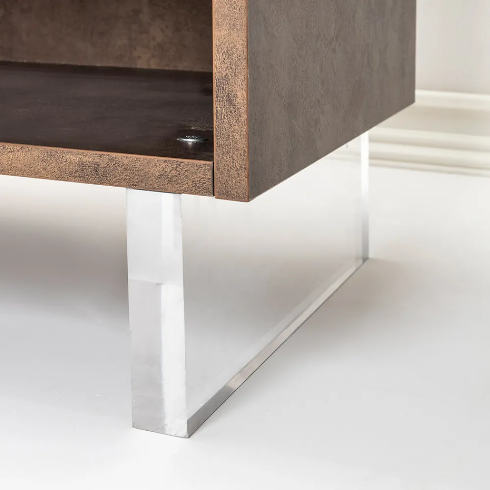 Die Melaminstruktur sorgt für Robustheit und einfache Pflege, während die Oberfläche ihren Glanz behält, als wäre die Zeit nie vergangen. Es ist das Versprechen von Möbeln, die mit ihrem warmen und einladenden Aussehen nicht nur die Umgebung verschönern, sondern auch Jahr für Jahr intakt bleiben.