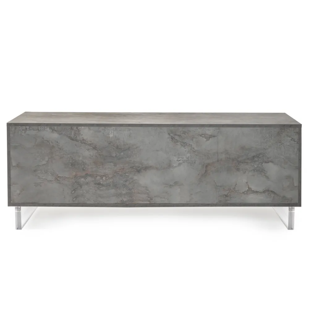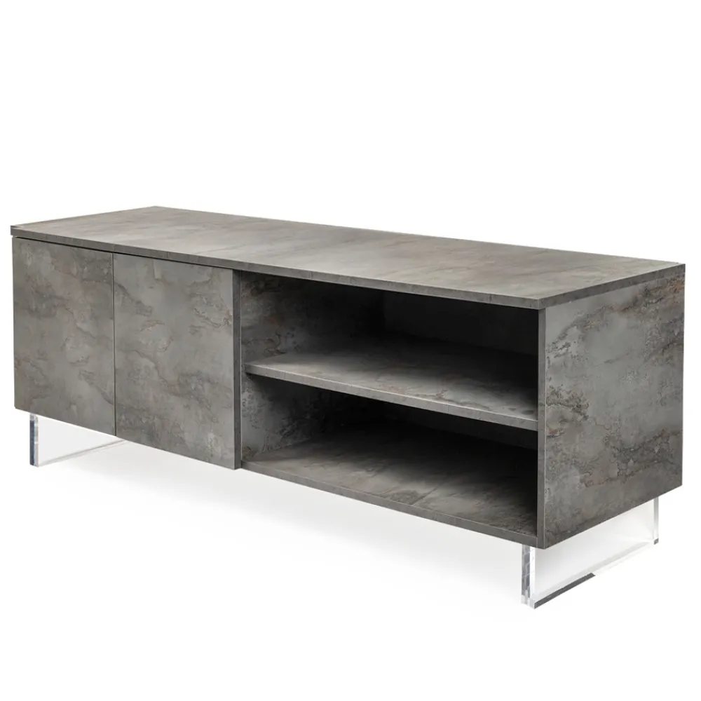 Wohnzimmer-Sideboard mit 2 Türen und 2 offenen Fächern mit Melaminstruktur und Plexiglasfüßen , vollständig in Italien hergestellt.