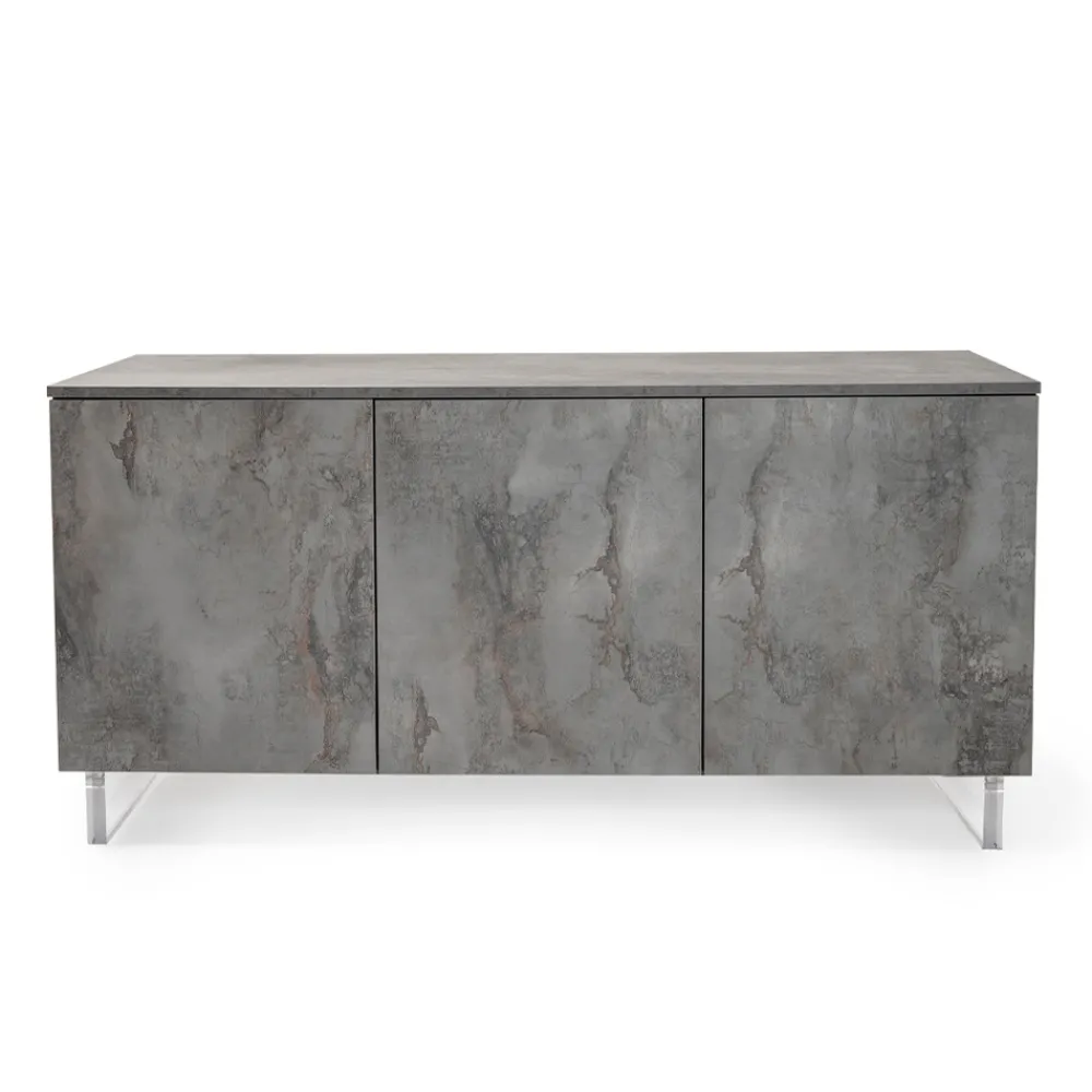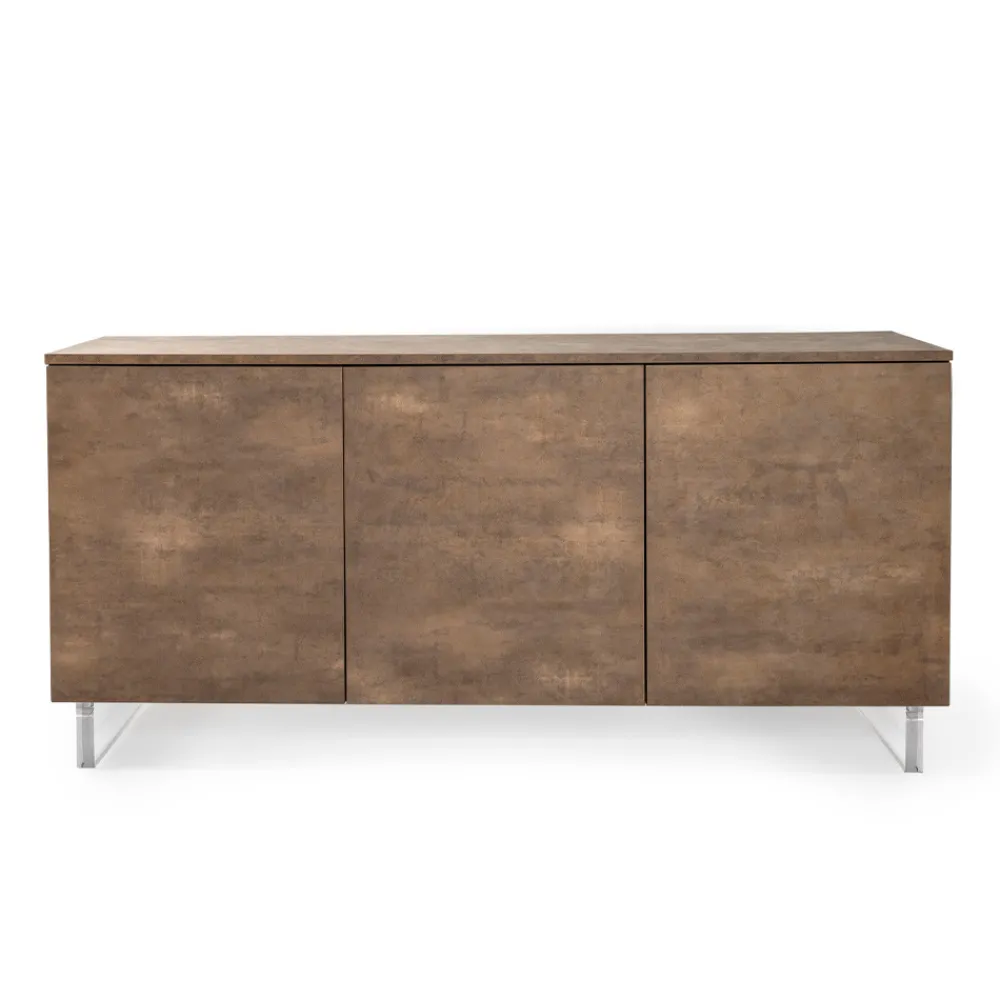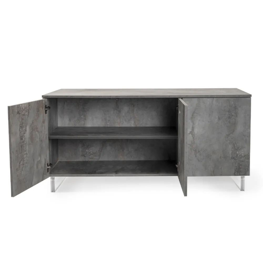 Dieses Sideboard verkörpert eine tadellose Mischung aus Stil und Zweckmäßigkeit und wertet jeden Raum mit seiner Präsenz auf. Hergestellt mit einer Melaminstruktur, garantiert es nicht nur außergewöhnliche Widerstandsfähigkeit , sondern auch einen Charme, der an die Authentizität italienischer Handwerkskunst erinnert, perfekt für alle, die immer auf der Suche nach einem Hauch von Klasse sind. Die Plexiglasfüße sorgen für ein modernes und fast ätherisches Detail, als wäre dieses Möbelstück ein Traum, der sanft über den Boden Ihres Wohnzimmers gleitet.