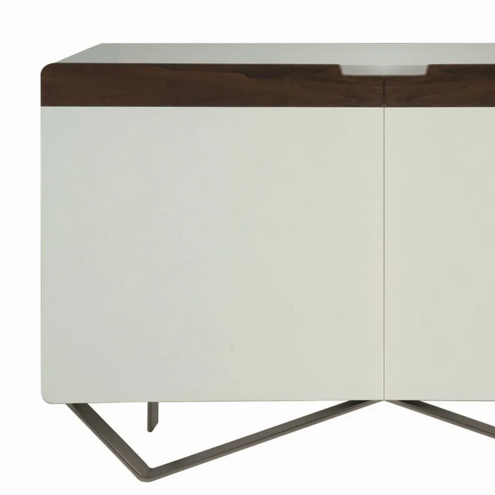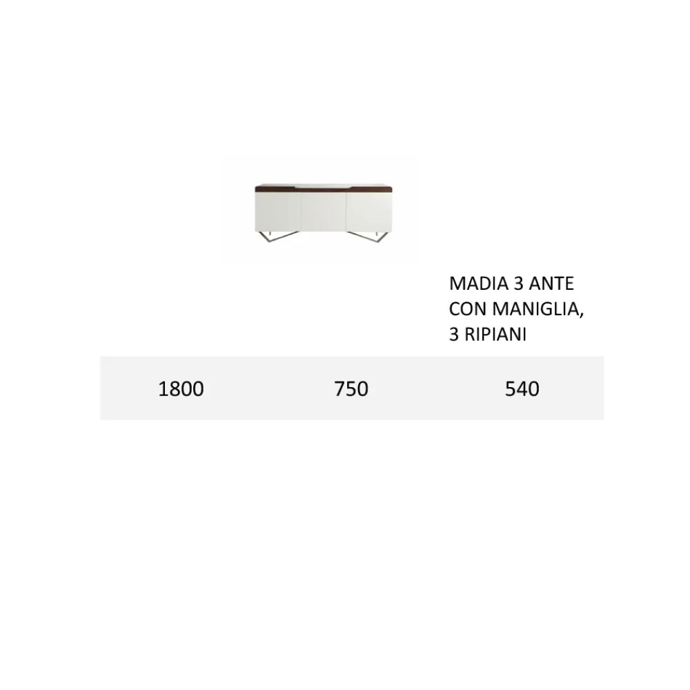Komplett in Italien hergestelltes Wohnzimmer-Sideboard mit Eisenfüße in Nickel-Finish , Schale aus weißem MDF , komplett mit Türen mit Griffen aus massivem Tulipier-Holz mit Canaletto-Finish Hergestellt in Italien durch die Verwendung hochwertiger Verarbeitung und Materialien, kombiniert mit dem raffinierten Geschmack eines zeitgenössischen Designs. Dieses Sideboard ist erhältlich in zwei verschiedene Größen mit zwei oder drei Türen und Innenregalen.