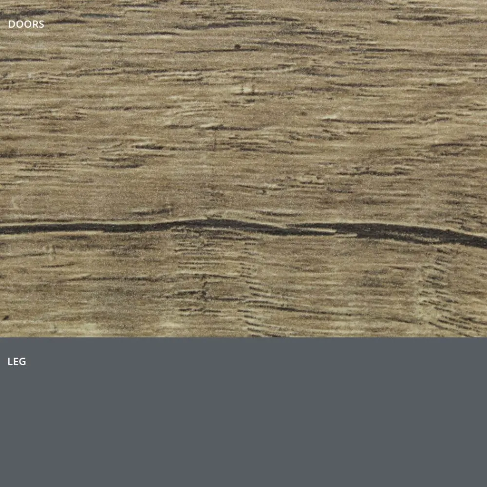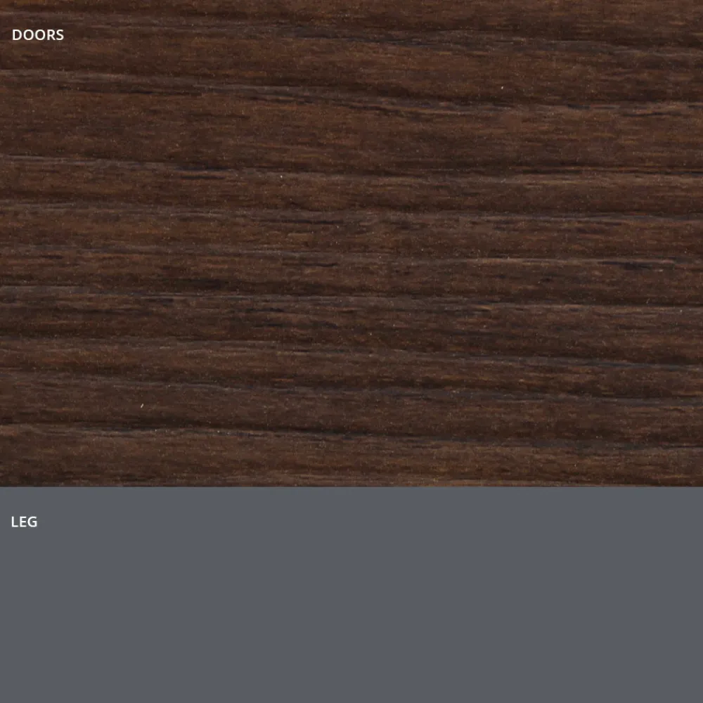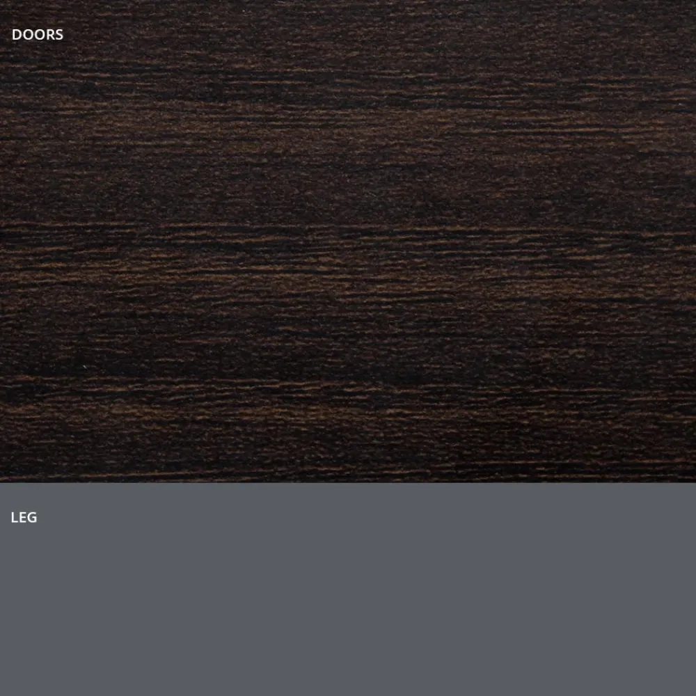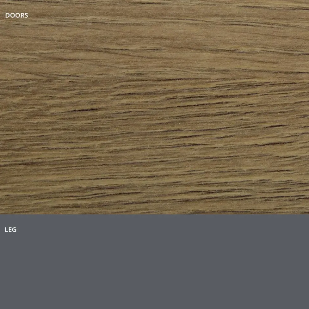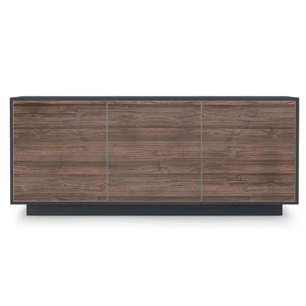 Modernes Sideboard mit Sockelstruktur und Sockel aus lackiertem Holz mit mattem Schiefergrau-Finish, 2 oder 3 Türen mit Aluminiumprofil und Fronten aus HPL-Laminat in Holzoptik, ausgestattet mit Push&Pull-Öffnungssystem und Innenregalen aus transparentem Hartglas (Stärke 6 mm, maximale Tragfähigkeit 20 kg). Dieses zu 100 % in Italien hergestellte Einrichtungsaccessoire aus hochwertigen Materialien stellt die perfekte Kombination aus Funktionalität und Design dar und sorgt für ein Ergebnis mit moderner Persönlichkeit und starker szenografischer Wirkung , ideal für diejenigen, die einen raffinierten und eleganten Einrichtungsstil lieben. Avantgarde . Um seinen Wert noch mehr zu unterstreichen, ist die HPL-Oberseite ein Hochdrucklaminat , das äußerst beständig gegen Chemikalien, Abrieb und Kratzer ist und es uns ermöglicht, eine solide Trägeroberfläche mit ausgezeichneter Haltbarkeit im Laufe der Zeit anzubieten.