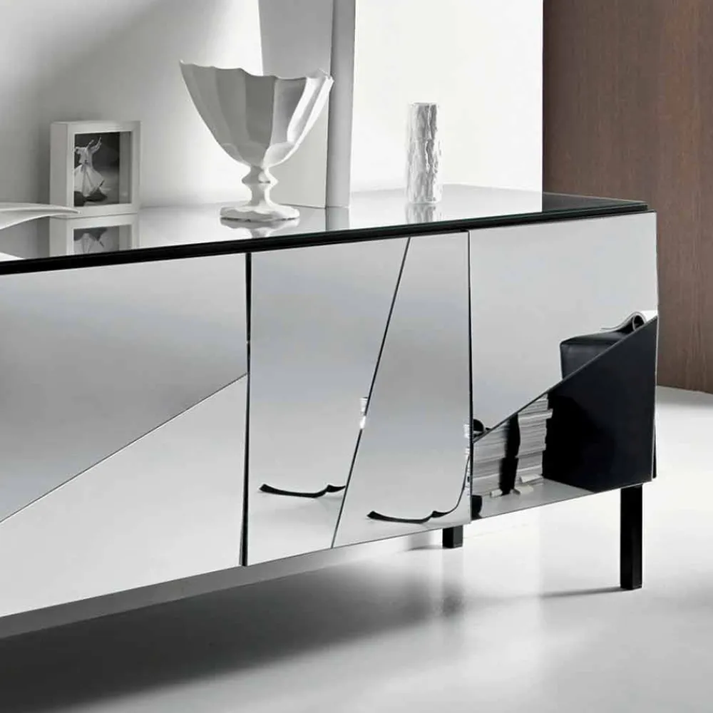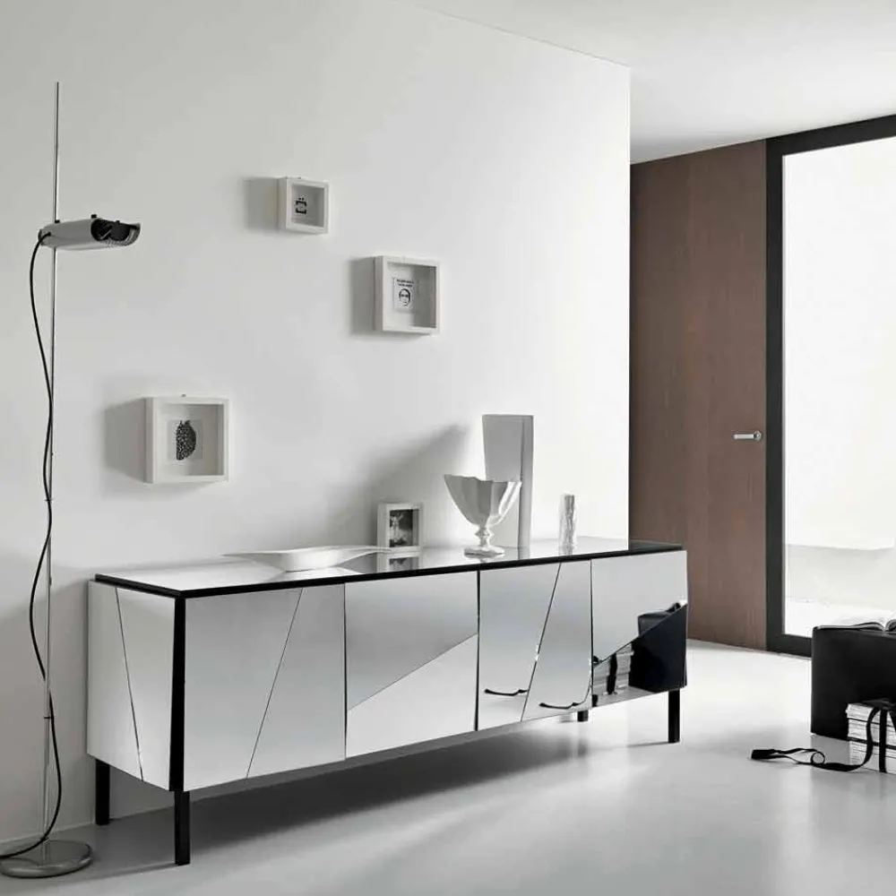 Möbel für das Wohnzimmer aus schwarz lackiertem Holz und verspiegeltem Glas made in Italy.