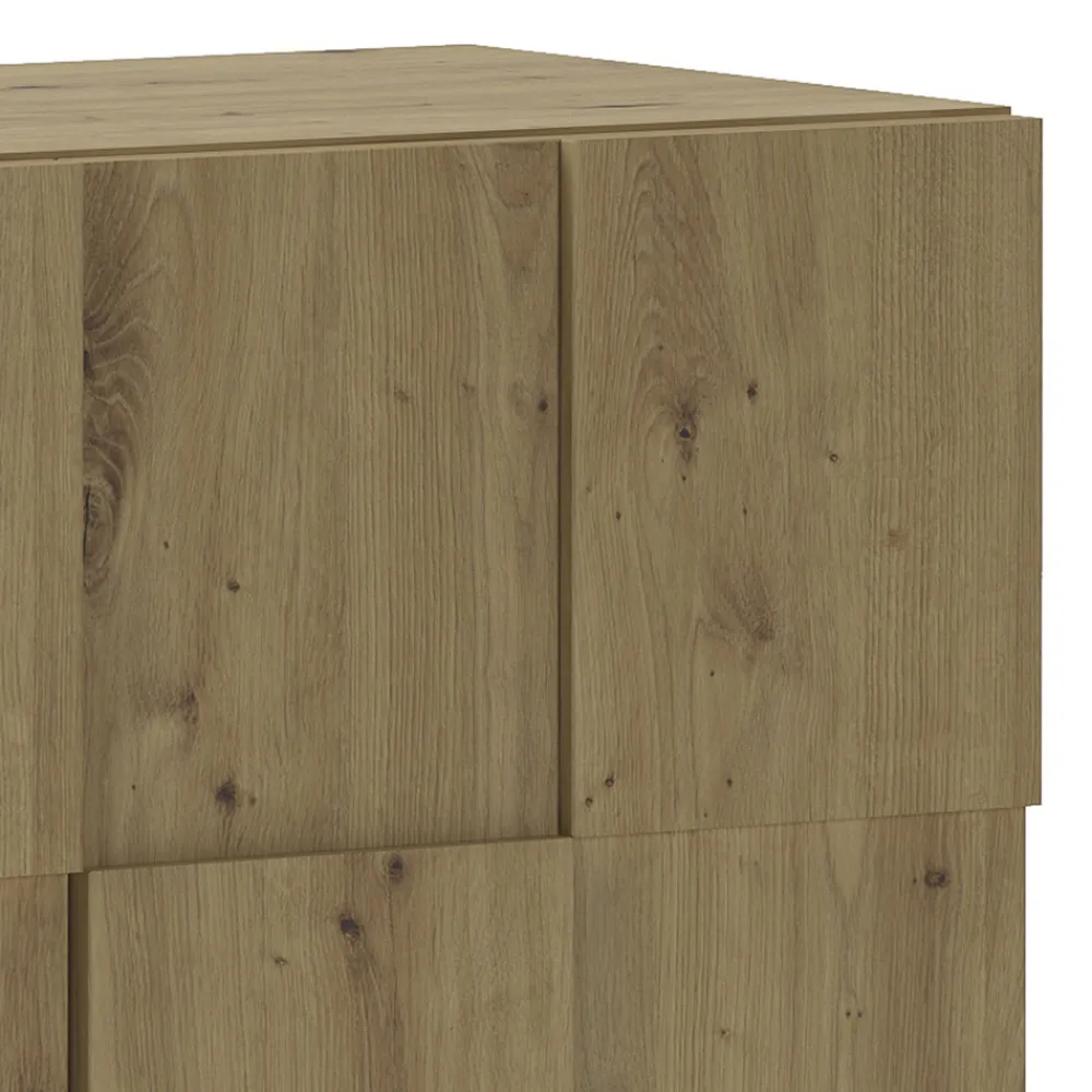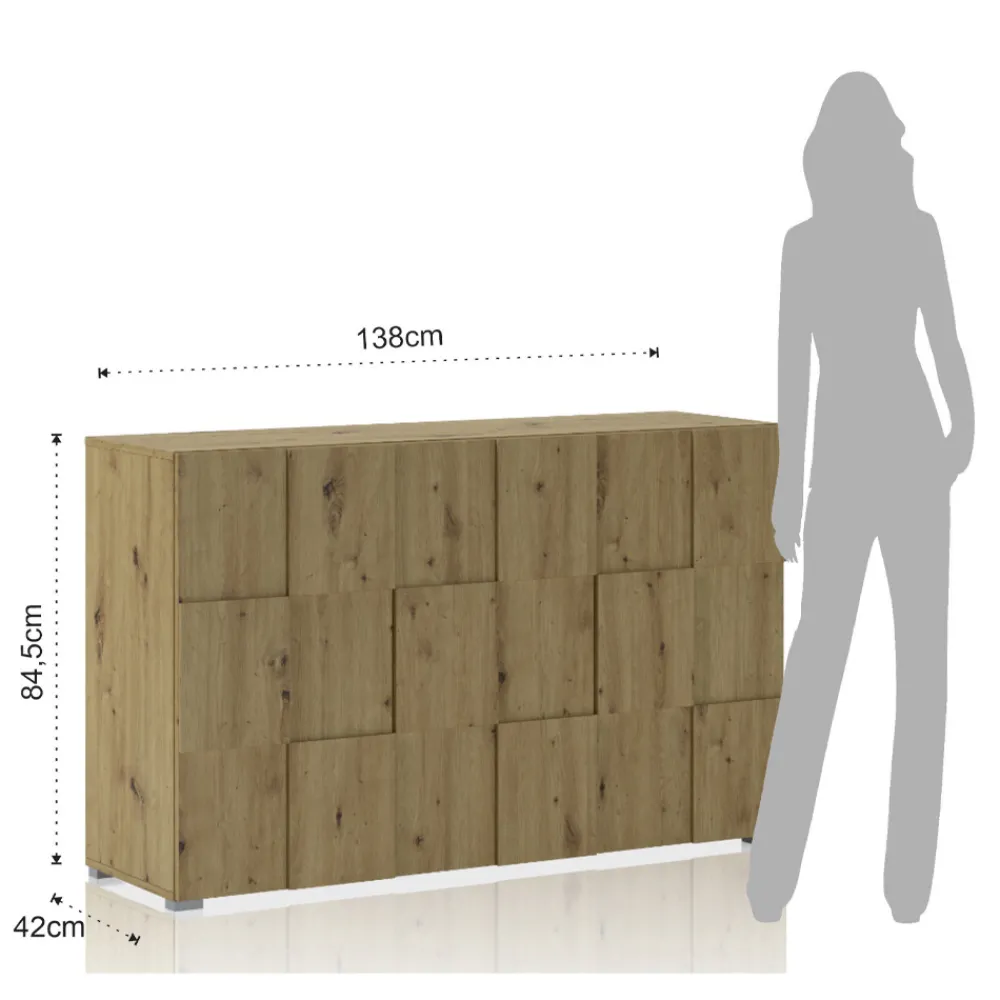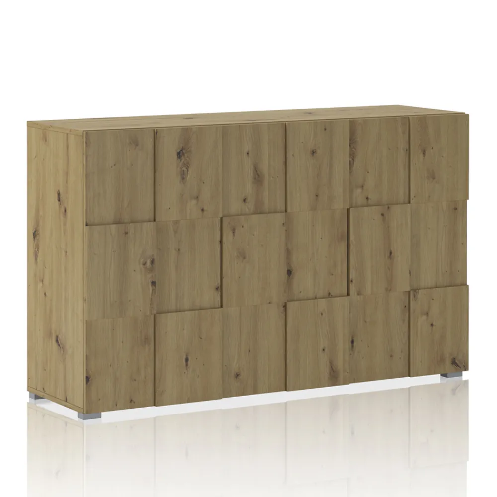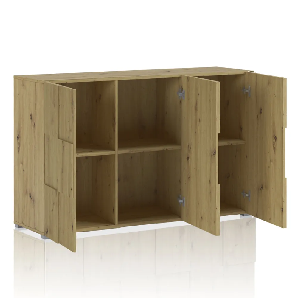 Wohnzimmer-Sideboard aus ökologischen Spanplatten mit Melaminbeschichtung in Eichenoptik , mit 3 Flügeltüren.
