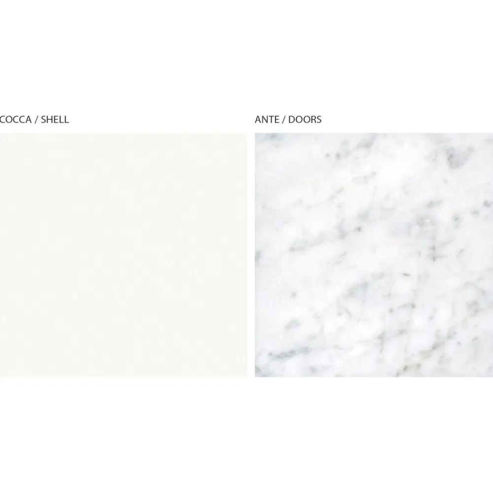 Wohnzimmer-Sideboard mit weißer MDF- Schale , 3 internen MDF-Regalen, Rückwand aus massivem Mehrschichtholz , marmorierten Türen mit Carrara- Finish, vollständig in Italien hergestellt. Das Produkt ist Teil der neuen Linie moderner Produkte, die mit Respekt vor der Natur hergestellt werden. Dieses elegante Sideboard zeichnet sich durch die Funktionalität und hohe Qualität italienischer Handwerkskunst aus.