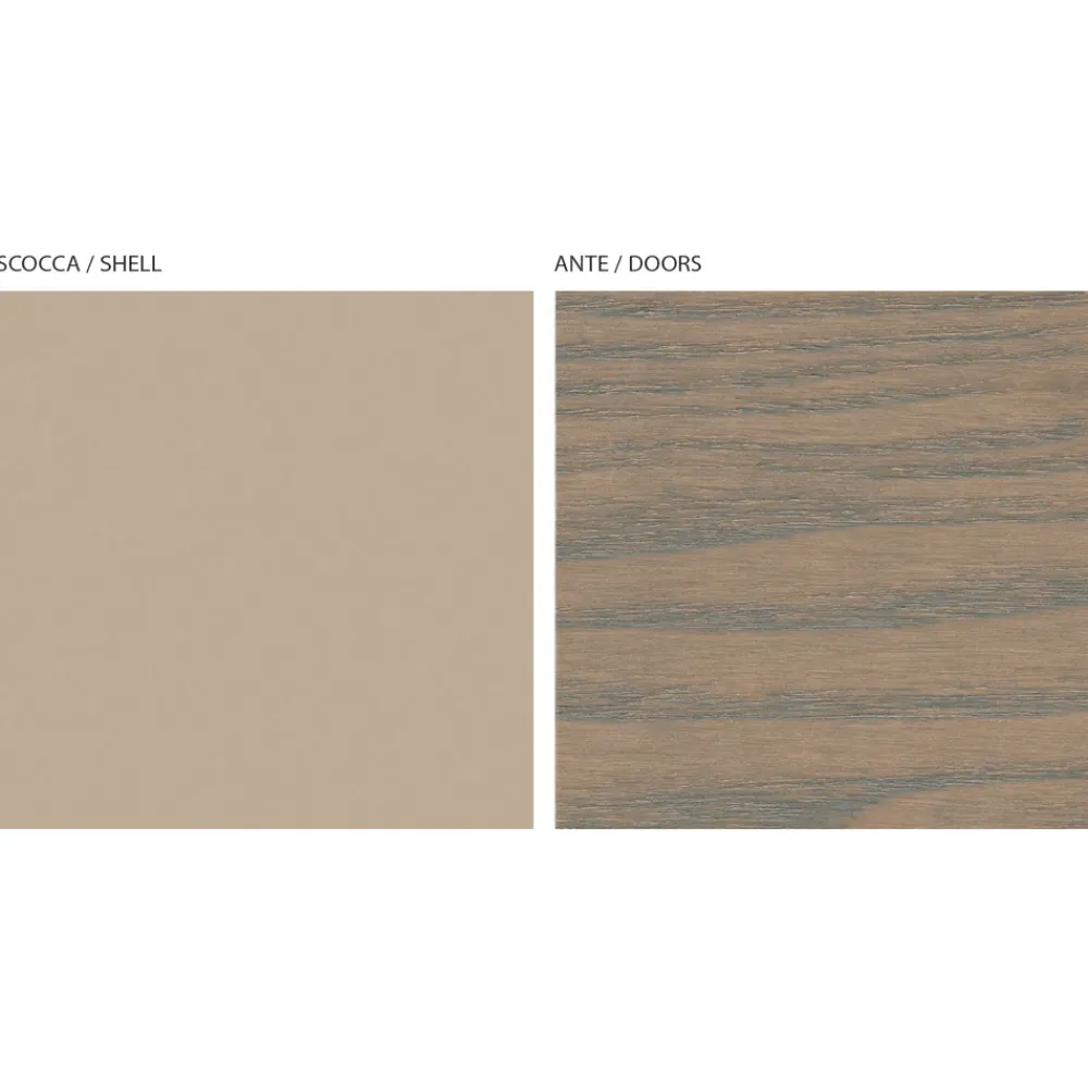 Wohnzimmer-Sideboard im modernen Stil, vollständig in Italien hergestellt , bestehend aus einem Bodenrahmen aus Eisen mit Nerz-Finish, einem Korpus aus MDF mit Nerz-Finish und einer Rückenlehne aus Massivholz , komplett mit Türen aus cappuccinofarbener Eschenholzplatte, hergestellt in Italien Verwendung von Prozessen und hochwertigen Materialien kombiniert mit dem raffinierten Geschmack zeitgenössischen Designs. Ein vielseitiges und originelles Design , das für verschiedene Verwendungszwecke in verschiedenen Bereichen des Hauses konzipiert ist und die Einrichtung auf exklusive Weise je nach Ihrem Geschmack und Bedarf vervollständigt.