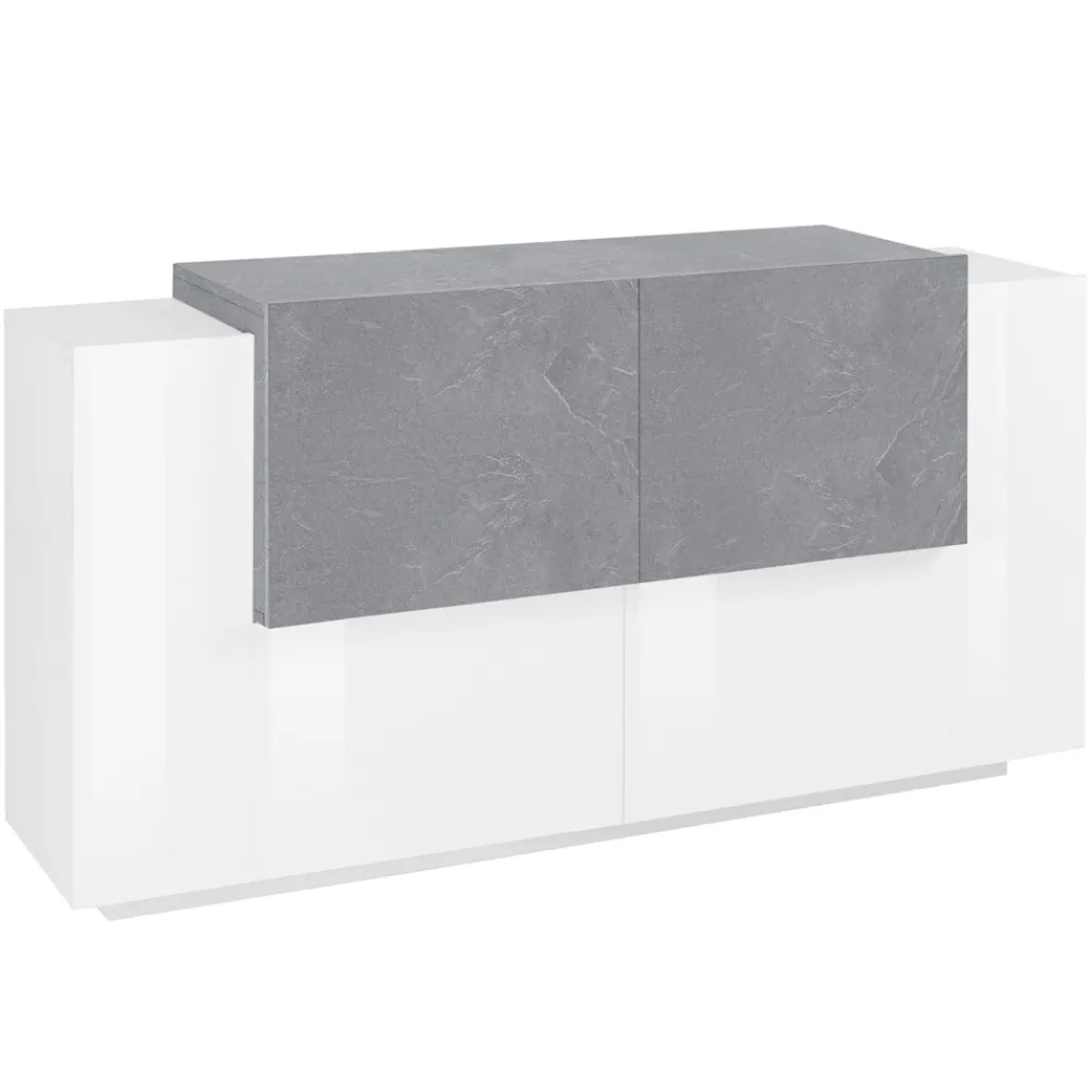 Der Sideboard-Schrank für das Wohnzimmer besteht aus insgesamt 4 Türen,2 aus glänzend weiß lackiertem Holz und 2 aus Ahorn- oder Schiefer-Melaminholz, um einen auffälligen und modernen Kontrast zu schaffen.