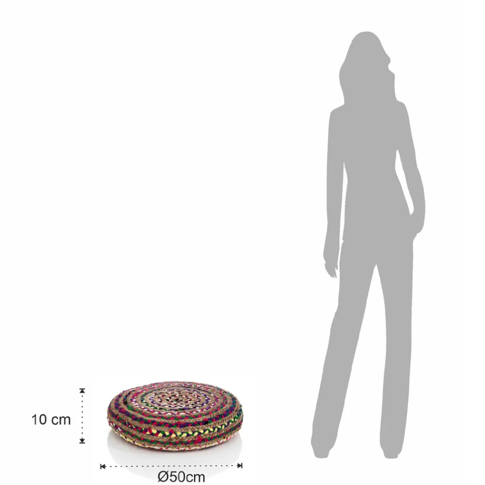 Hinweis: Der 50 x 50 x 10 cm große Pouf besteht aus 30 % Jute und 70 % Baumwolle