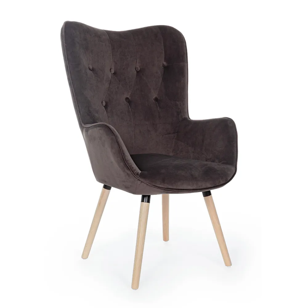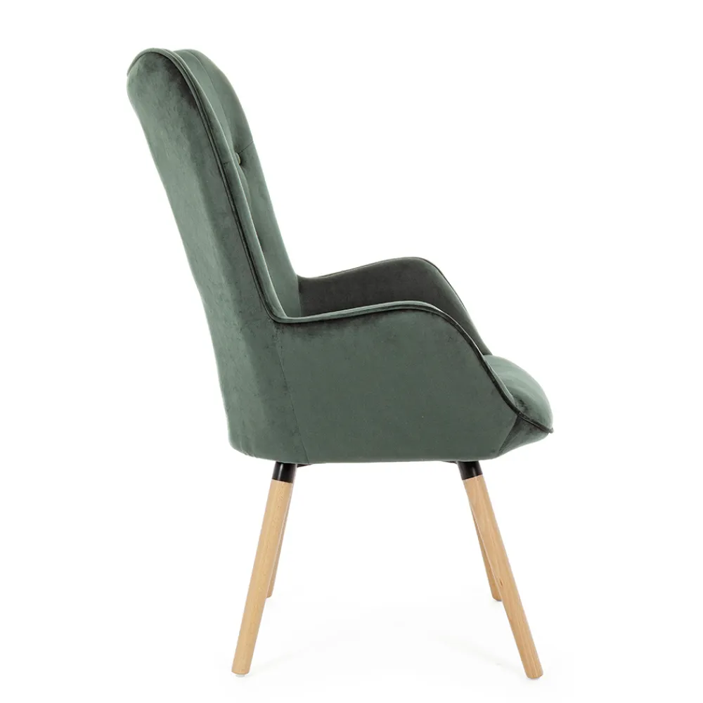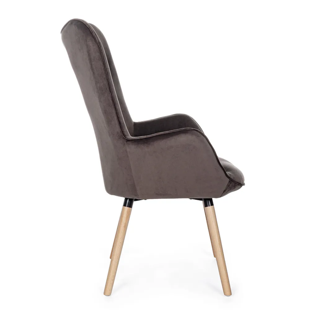 Moderner Sessel aus Buchenholz und Samtsitz 2 Ausführungen.