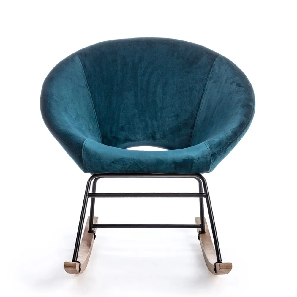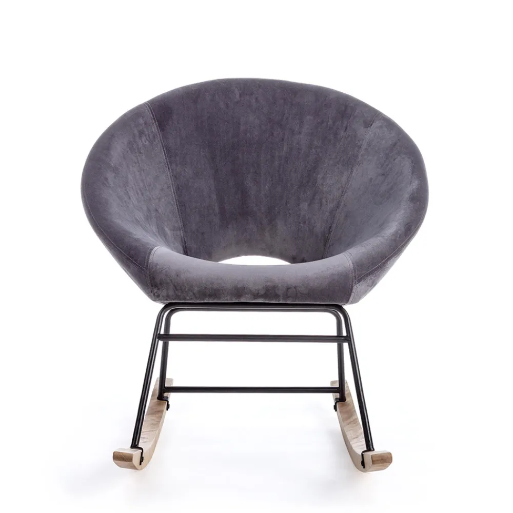 Schaukelsessel mit Struktur aus Stahl und Birkenholz, gepolsterter Sitz mit Samteffekt 3 Ausführungen.