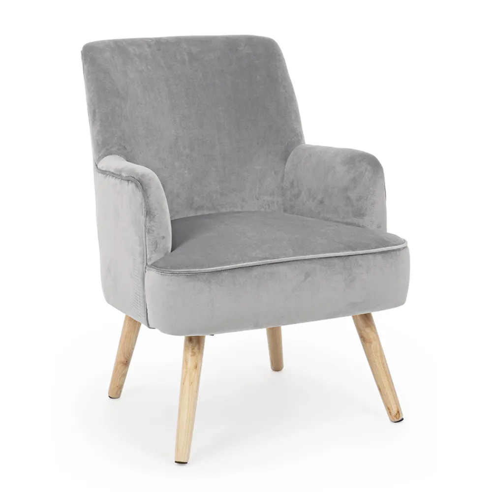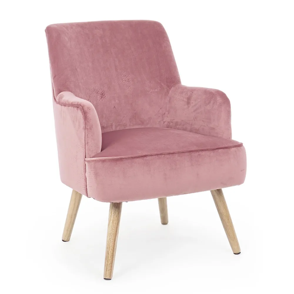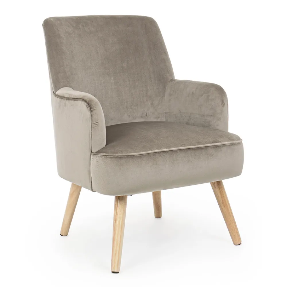 Wohnzimmersessel aus Holz und Samteffekt Sitz 4 Ausführungen.