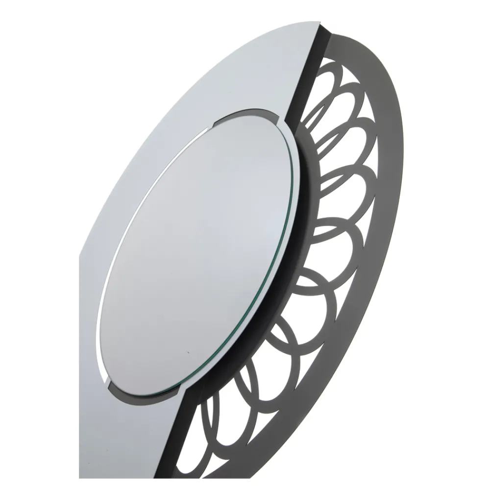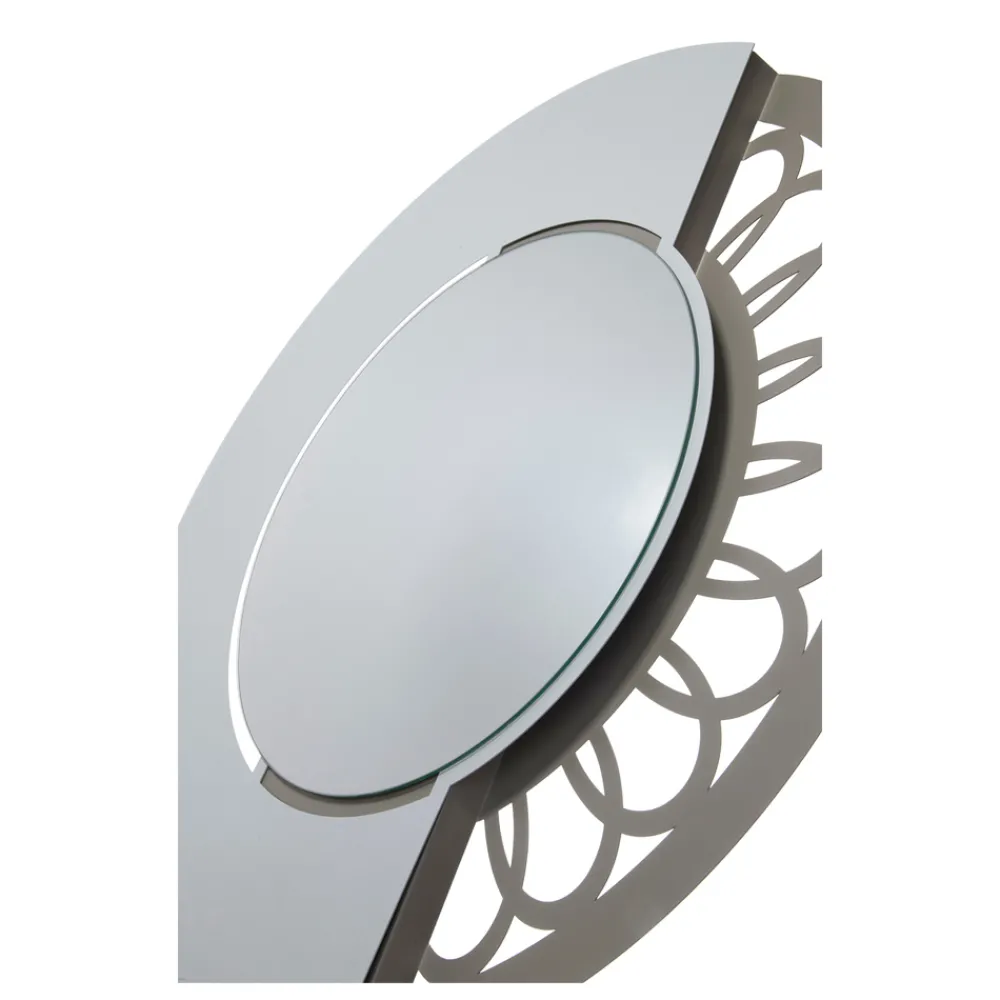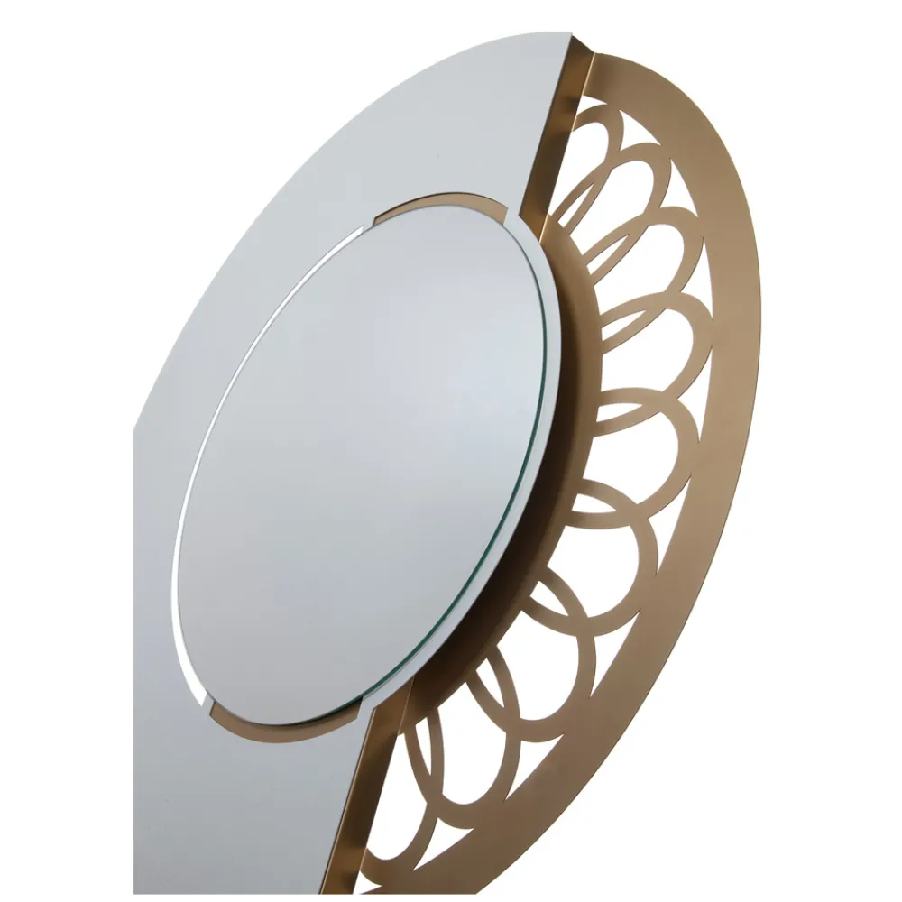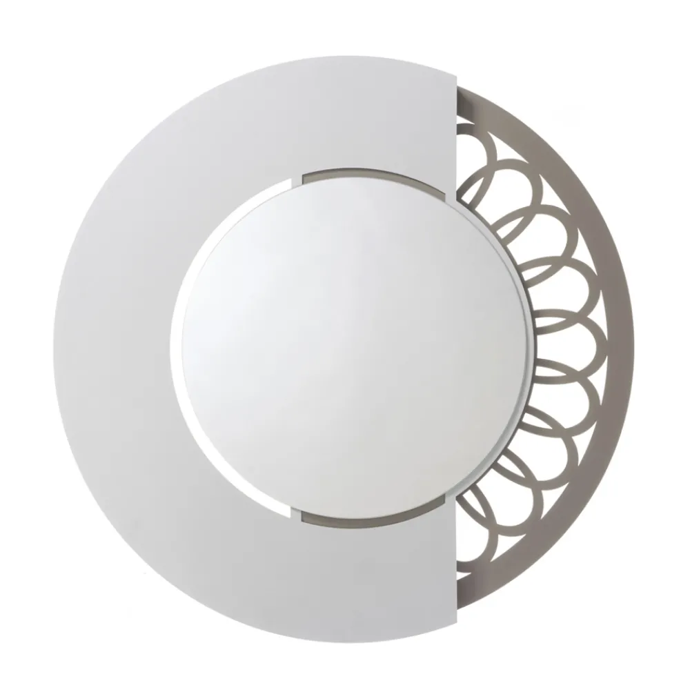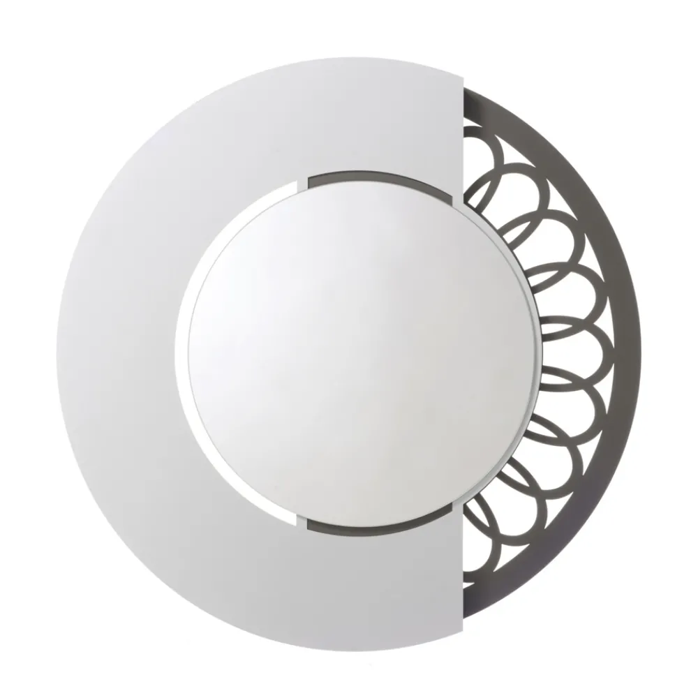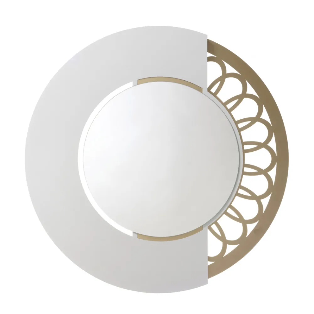 Dieser elegante Spiegel repräsentiert die Begegnung zwischen moderner Ästhetik und klassischer Raffinesse . Das abgerundete und minimalistische Design verleiht der Umgebung ein Gefühl von Harmonie und Ausgeglichenheit. Drei Viertel des Außenumfangs bestehen aus einem massiven Rahmen , der für einen vollen und raffinierten Effekt sorgt. Das verbleibende Viertel ist elegant durchbrochen und schafft einen leichten und raffinierten visuellen Kontrast.