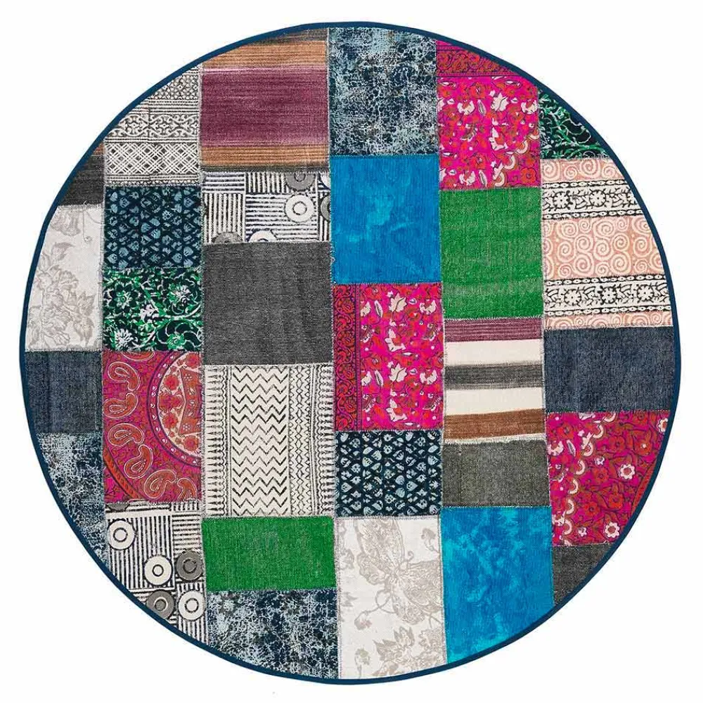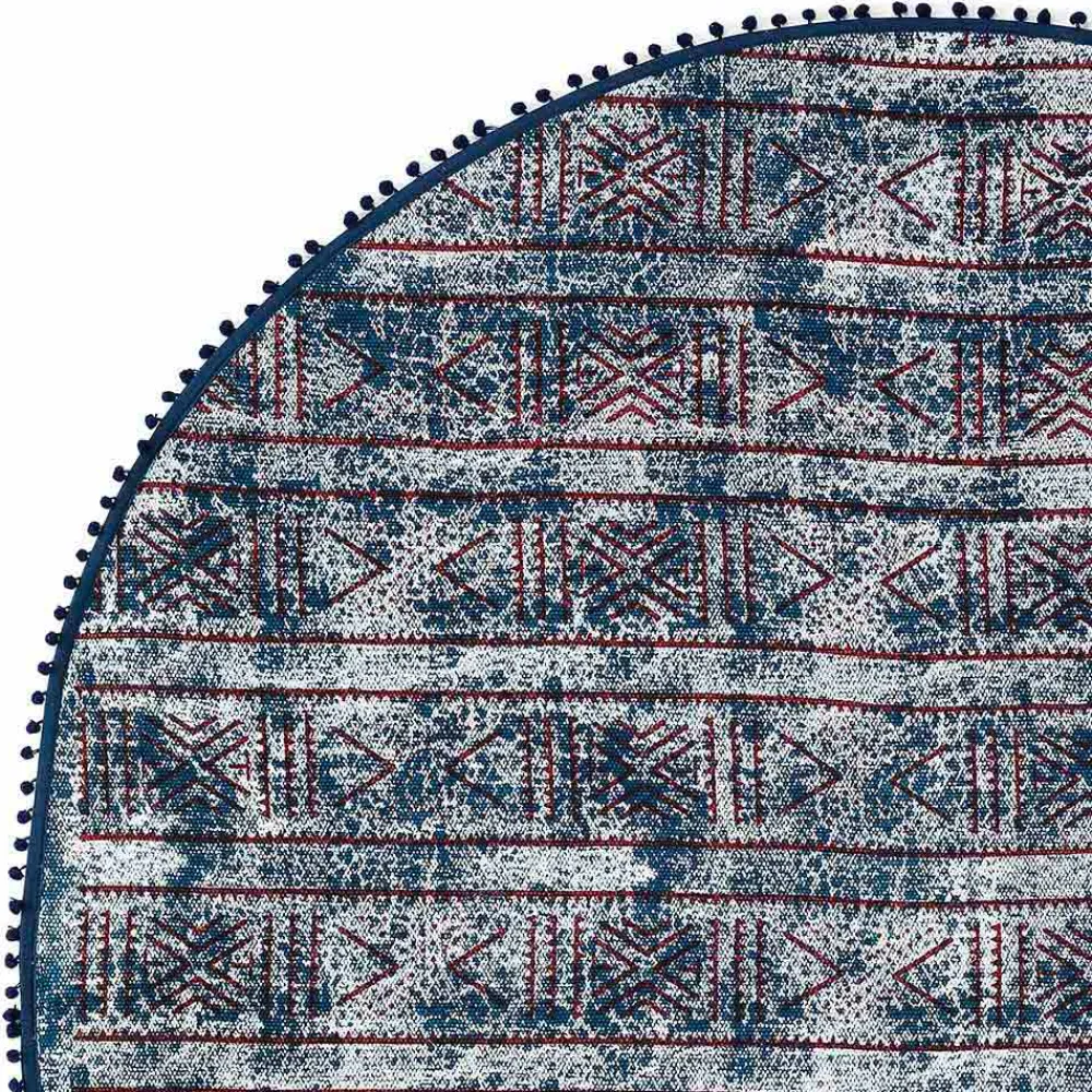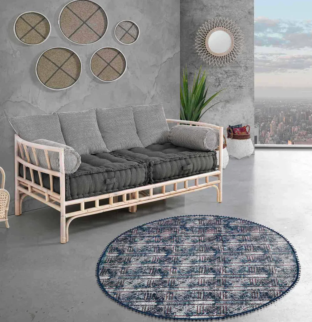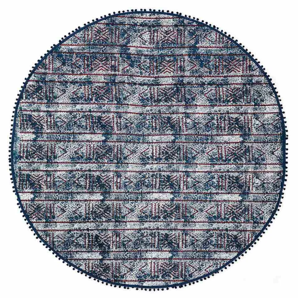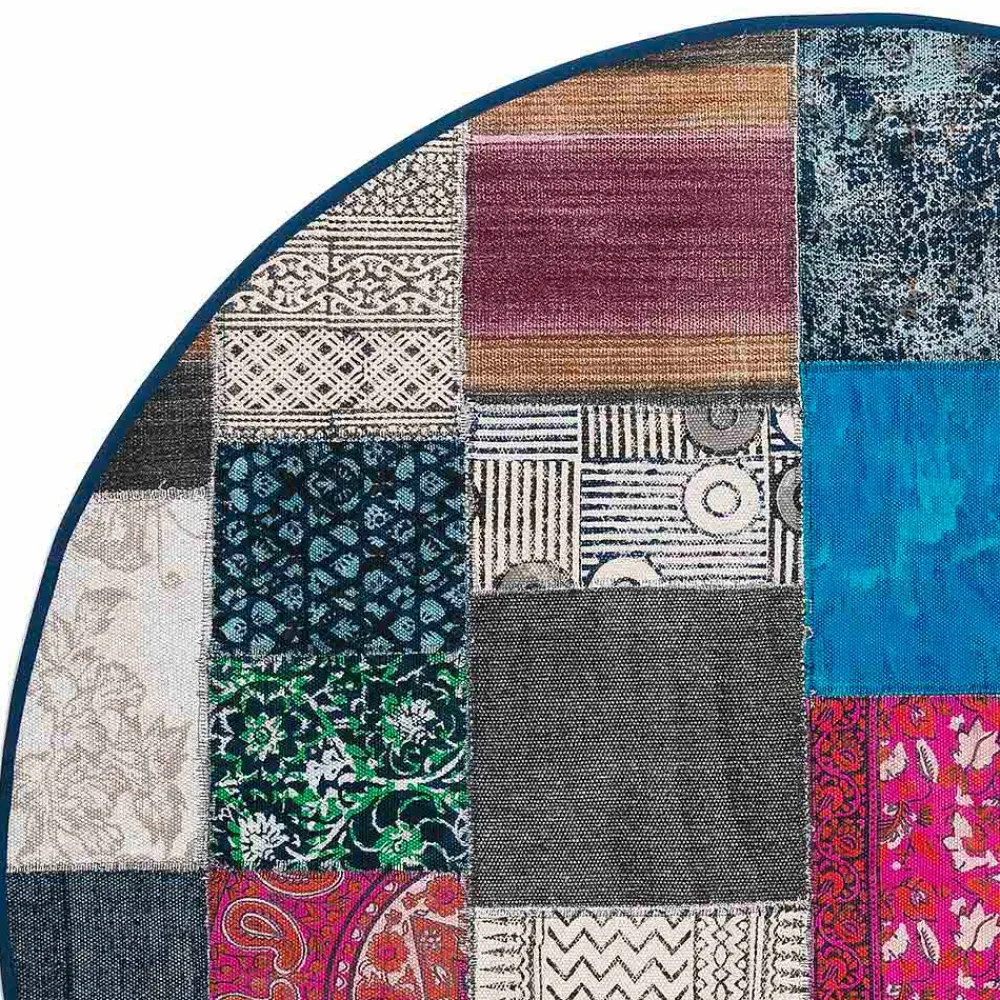 Runder Teppich im Ethno-Design aus Baumwoll-Kelim.