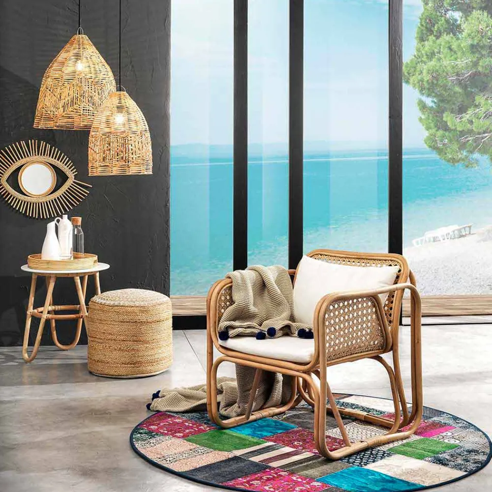 Fibra ist ein runder Teppich , der viele Befriedigungen bereiten kann : Er unterteilt den Wohnraum, schafft eine warme und einladende Atmosphäre und ist auch zum Verbergen von Fehlern im Bodenbelag geeignet.