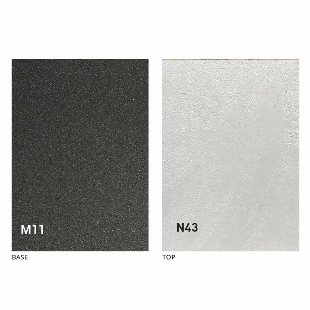 - Oberseite aus weißem, gespachteltem Holzfurnier.