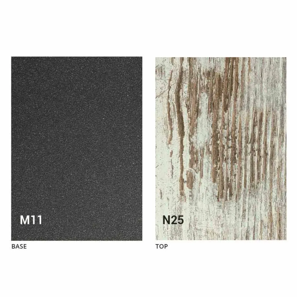 Der Wert des Produkts ergibt sich aus der handwerklichen Herstellung in Italien mit hochwertigen Materialien und 100 % Made in Italy , einschließlich der Verwendung von veredeltem Holz für die Oberseite und geprägtes, graphitfarben lackiertes Metall für die Basis.