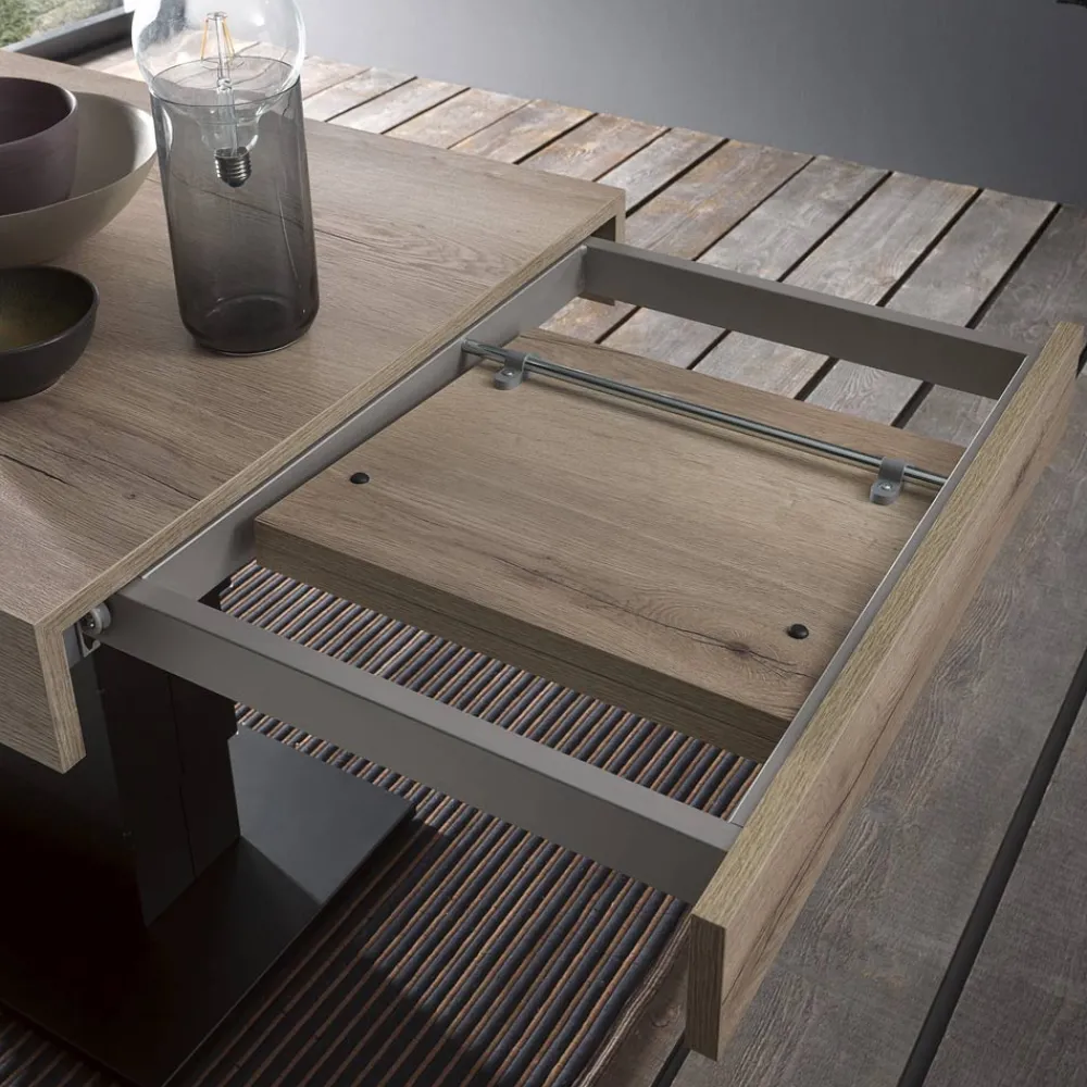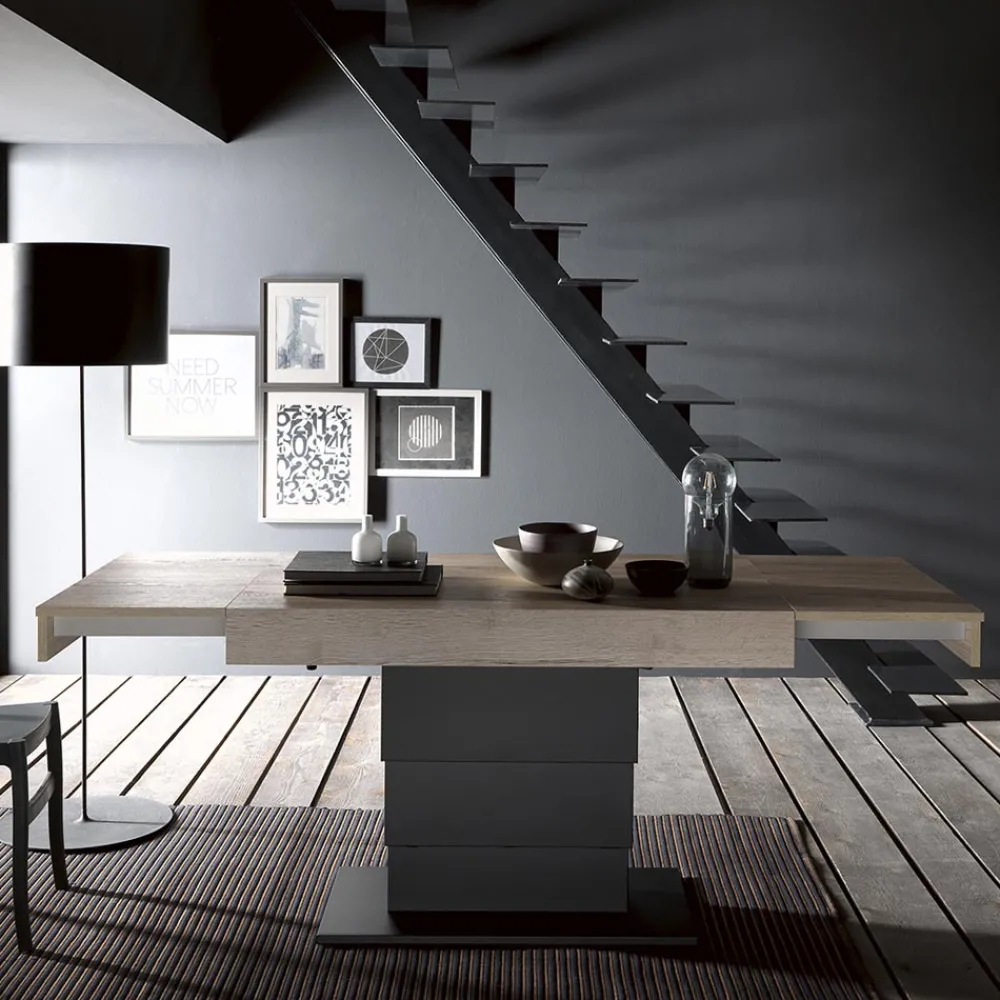 Verwandelbarer Couchtisch aus Holz und Metall. Hergestellt in Italien.