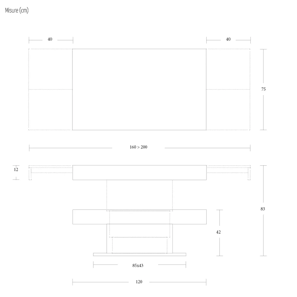 | Maße | Geschlossen: L 120 x X 75 x H 42 cm; Offen: L 160/200 XP 75 X H 83 cm |