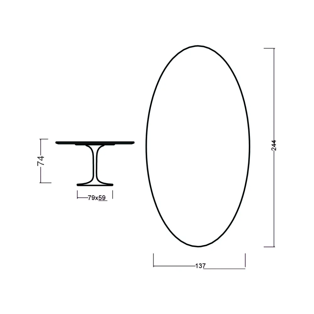 NB : der Tischfuß ist auch in matt und schwarzgrau erhältlich. Es kann zu Abweichungen von einigen cm in den Maßen kommen.