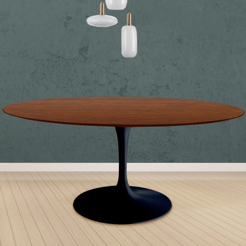 Runder Esstisch aus dunkler Walnuss gebeizter Eiche und poliertem Aluminium Made in Italy