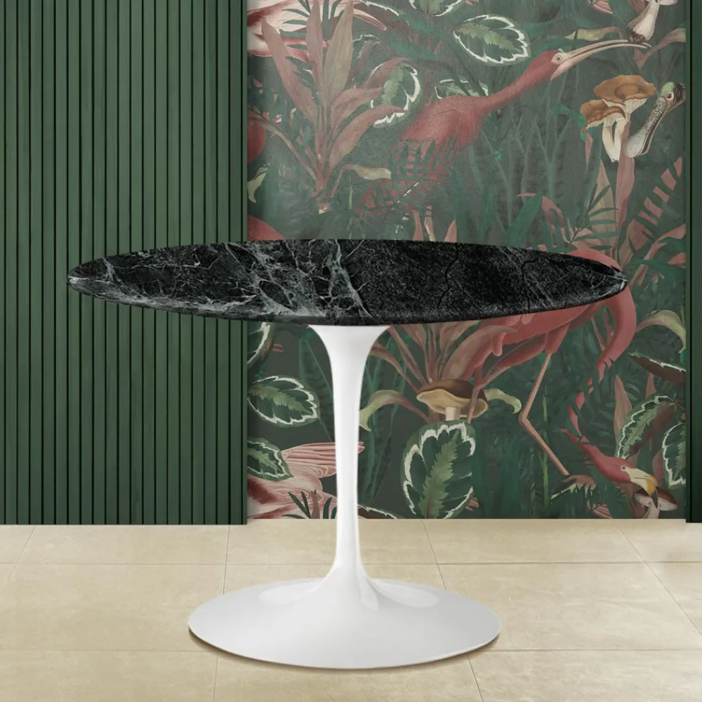 Runder Esstisch mit Platte aus grünem Alpenmarmor und poliertem Aluminiumfuß Made in Italy