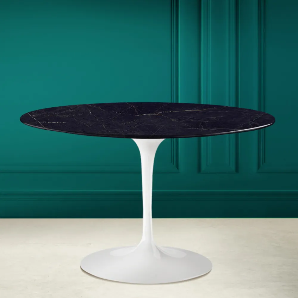 Esstisch komplett made in Italy mit runder Platte aus Keramik Noir Laurent, Effekt Marmor Noir Laurent matt , und Untergestell aus poliertem Aluminium. Das Produkt zeichnet sich durch sein modernes und sehr zeitgemäßes Design aus und ist in einer schlanken und eleganten Linie gehalten, um Esszimmer und Wohnräume mit Geschmack und Stil einzurichten. Die lebendige und kostbare Maserung der Keramik Noir Laurent verleiht dem Raum einen Hauch von Originalität und Frische, ohne die für einen Esstisch typische Praktikabilität und Funktionalität zu vernachlässigen.