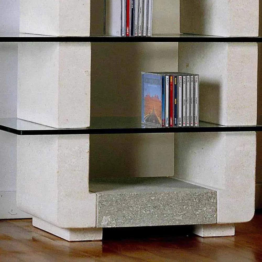 Der TV-Möbel ist komplett Made in Italy und ist aus Stein aus Vicenza und aus Kristall hergestellt.