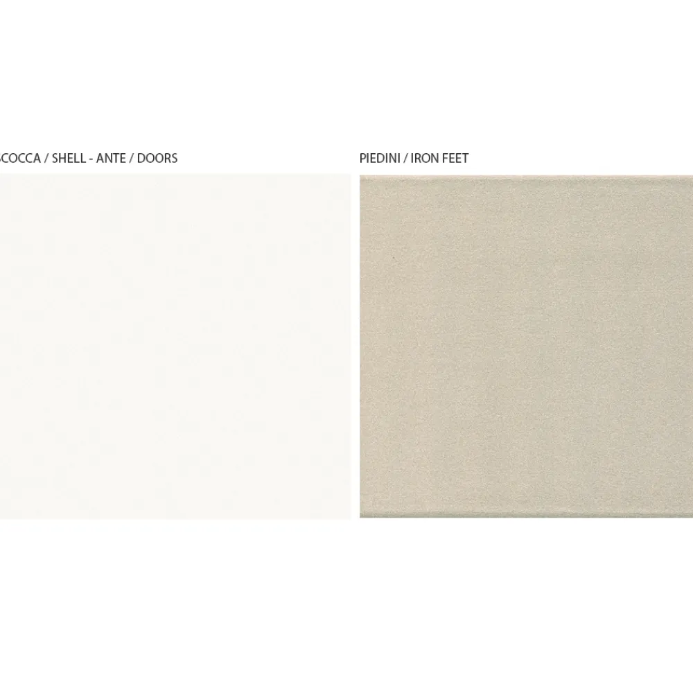 Modernes und elegantes Produkt aus weißem MDF mit nickelfarbenen Eisenfüßen , bestehend aus 2 Türen in weißer Ausführung mit massiver Tulpenholzkante in Canaletto-Ausführung, einer Schublade in der gleichen Ausführung und ein offenes Fach , das zusätzlichen Stauraum garantiert.