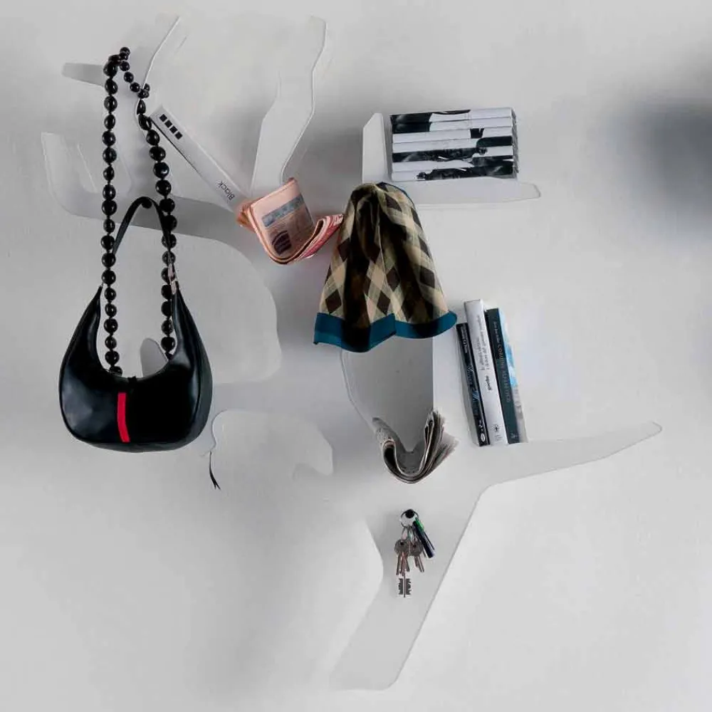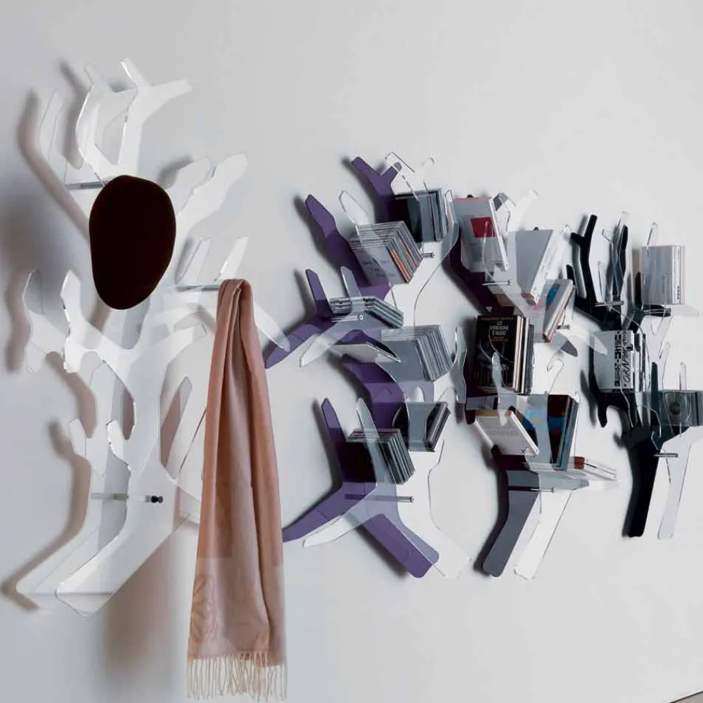 Dieses Regal eignet sich ideal zum Organisieren von Büchern, Zeitschriften, CDs, aber auch als praktischer Kleiderbügel. Es kann sowohl ein funktionales Möbelstück als auch eine originelle dekorative Ergänzung darstellen. Eine innovative Idee, die die Einrichtung Ihrer Räume zu einem echten Spaß macht und es Ihnen ermöglicht, die Umgebung dank eines Hauches von Farbe mit Persönlichkeit zu bereichern. Die verfügbaren Farben bieten die Möglichkeit, es in jeden Bereich des Hauses einzufügen und es mit den unterschiedlichsten Möbelstilen zu kombinieren, von den kreativsten und farbenfrohsten bis zu den nüchternsten und diskretesten. Seine Ästhetik umfasst Funktionalität und Design und bietet eine äußerst kreative Einrichtungslösung, die mit ihrer lebendigen Seele jeden Raum erneuern kann.