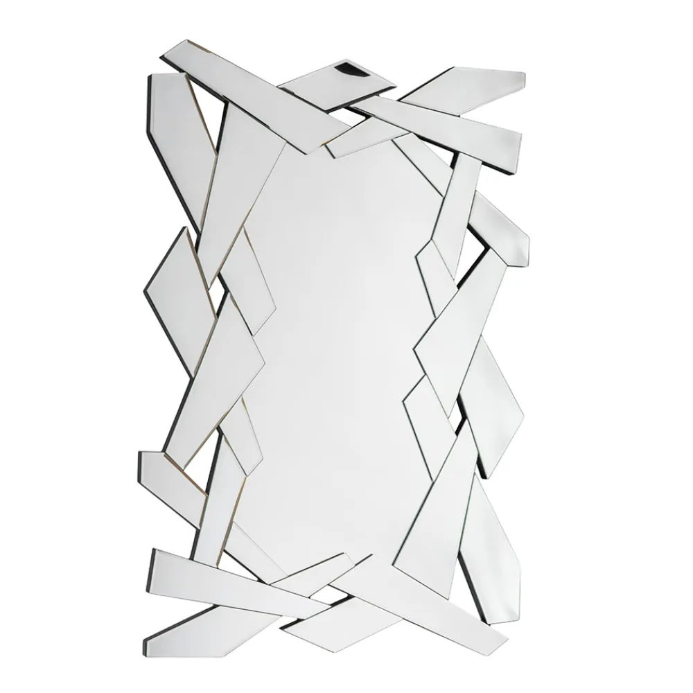 Moderner Spiegel aus Glas mit geometrisch geformtem Rahmen. Ein Möbelstück, das dank seiner eleganten und raffinierten Ästhetik jedem Zuhause einen Hauch von Klasse verleiht. Seine originelle und einzigartige Form verleiht dem Raum Bewegung und verleiht der Umgebung ein Gleichgewicht. Perfekt, um das Büro oder Schlafzimmer zu bereichern, ist dieser Wandspiegel eine perfekte Dekoration für jeden Raum.